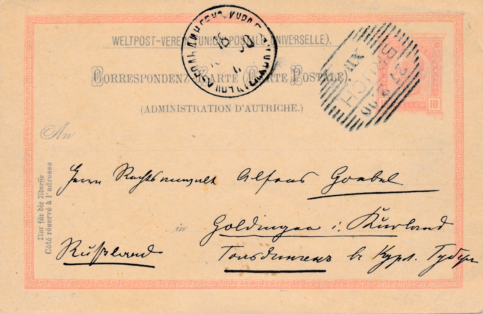10 Heller Ganzsachen - Karte 1900 aus Bruch mit Kastenstempel (11398)