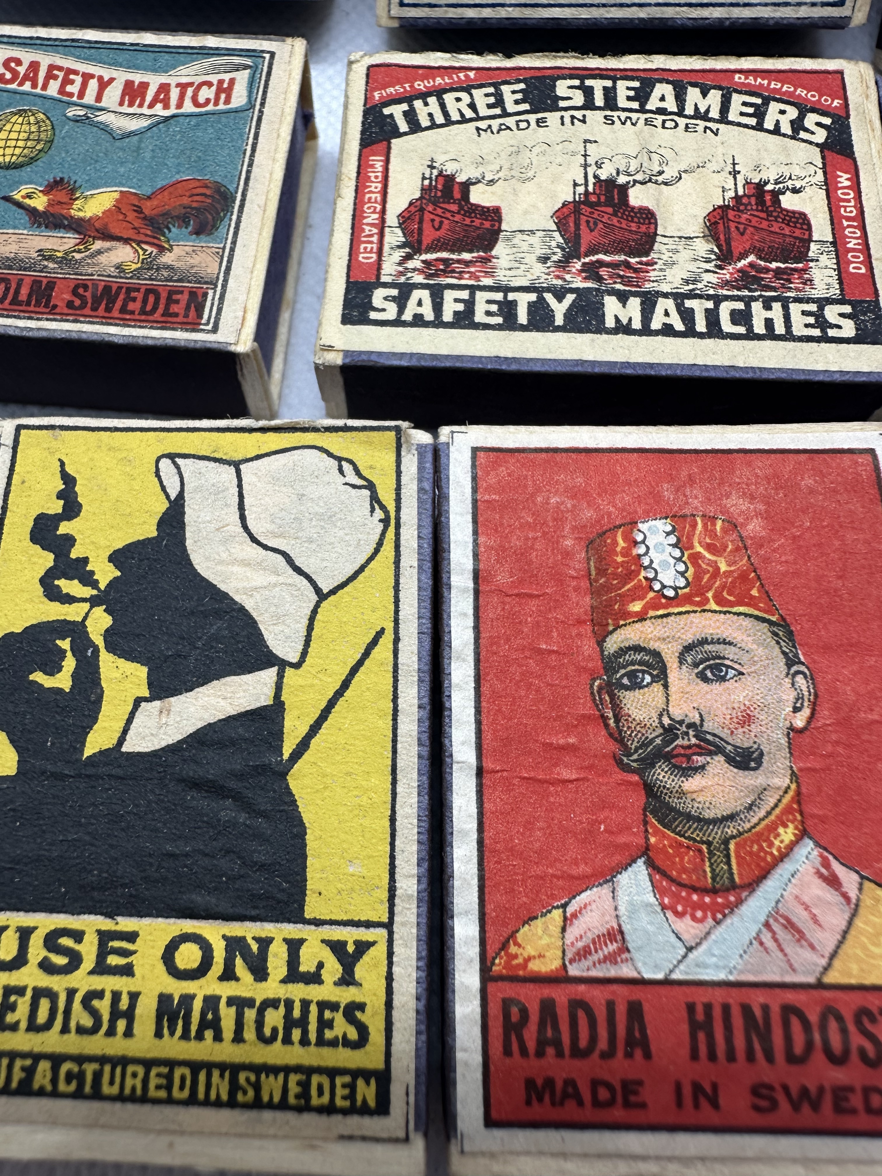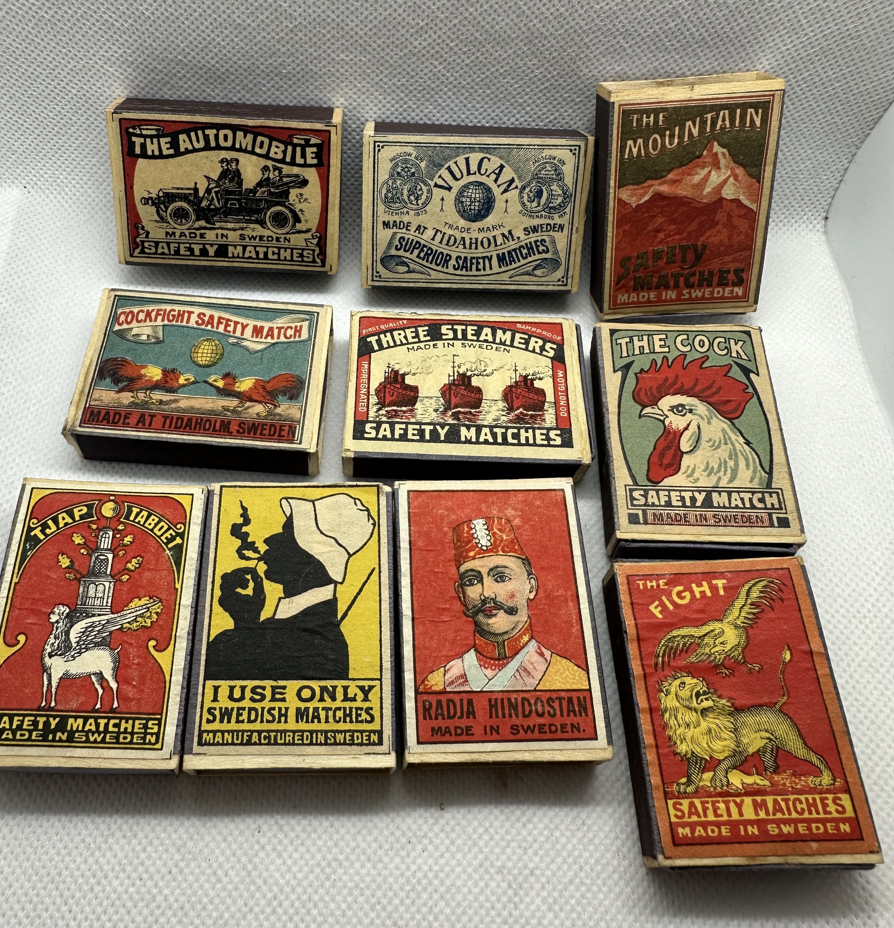 10 Stk. antike Streichholzschachteln Made in Sweden