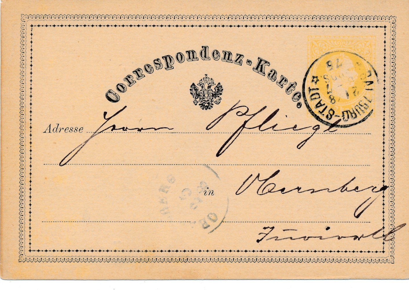2 Kreuzer - Ganzsachen - Karte 1874 aus Salzburg Stadt (10662)