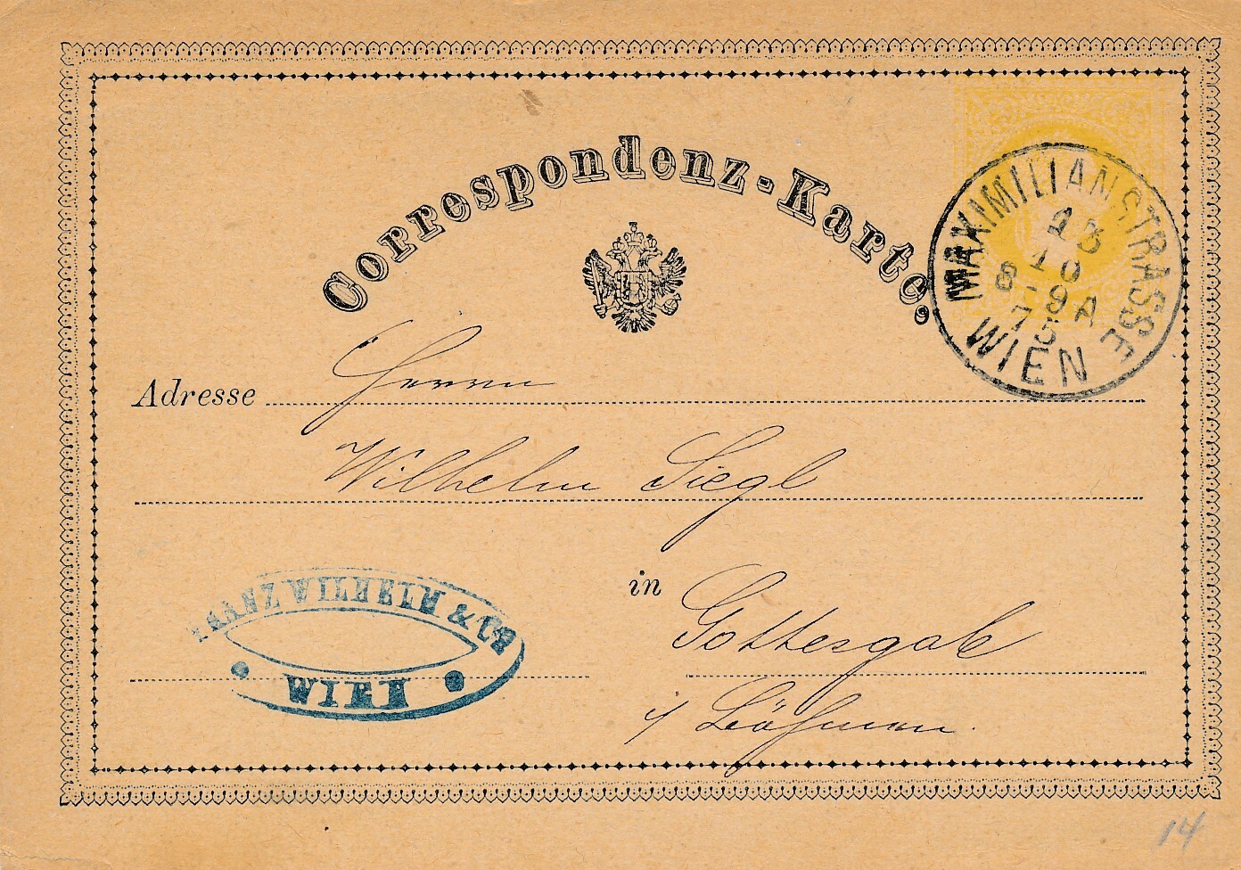 2 Kreuzer - Ganzsachen Karte 1875 aus Wien Maximilianstrasse (11125)