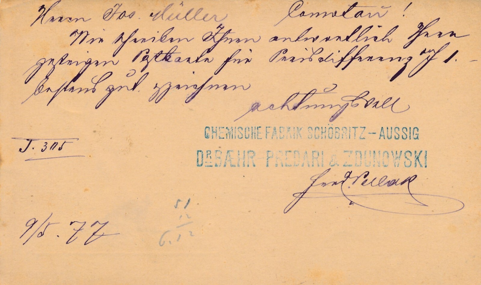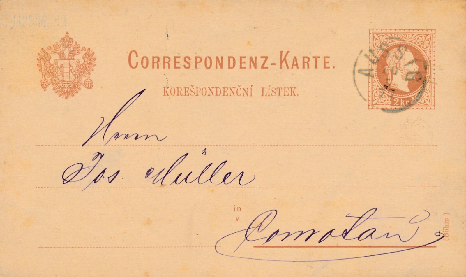 2 Kreuzer - Ganzsachen - Karte 1877 aus Aussig (10155)