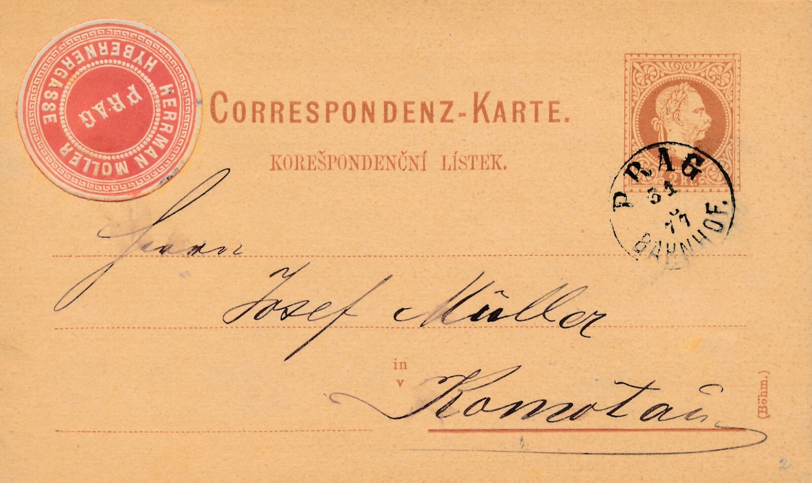 2 Kreuzer - Ganzsachen Karte 1877 aus Prag (11136)