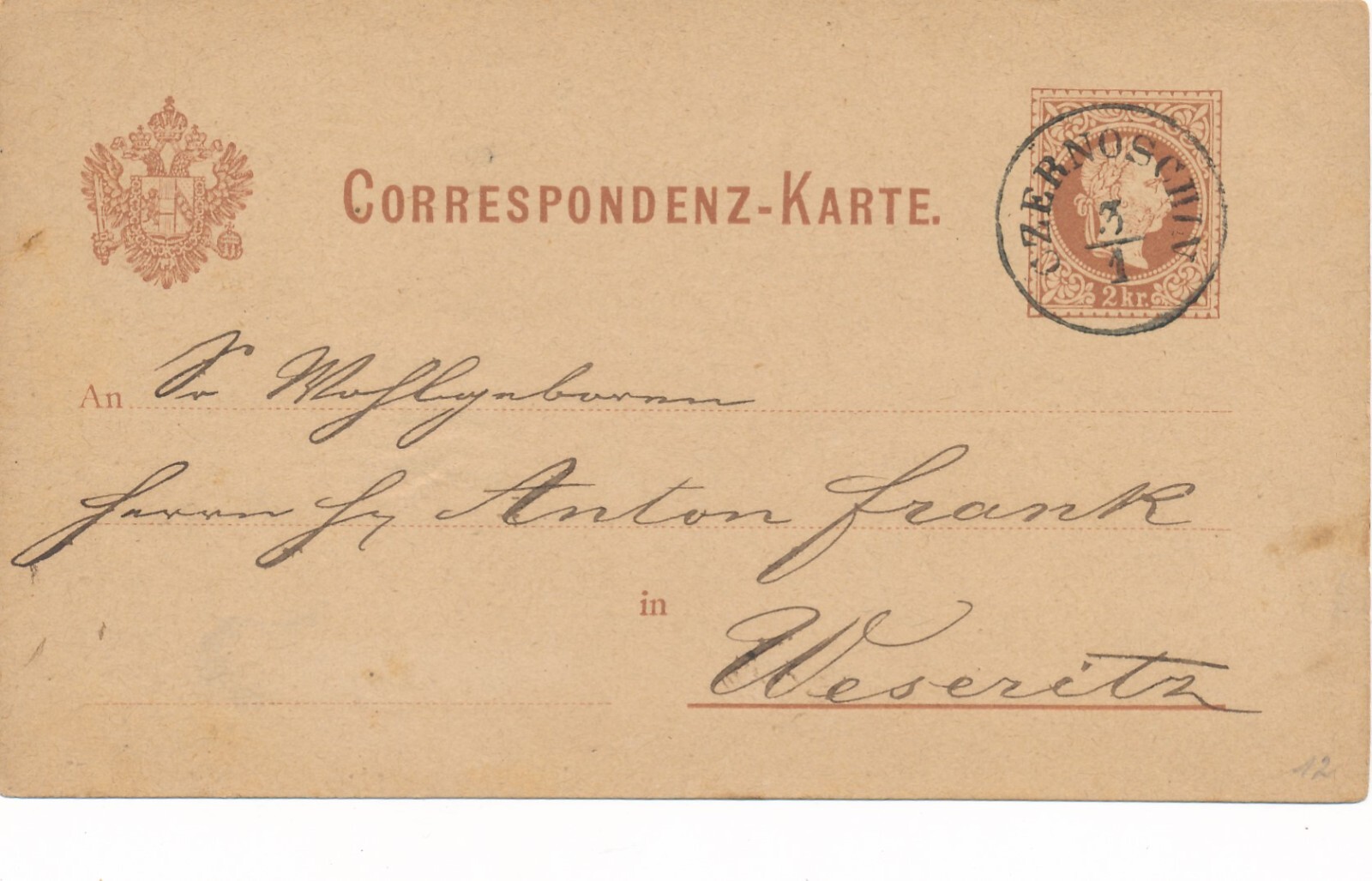 2 Kreuzer - Ganzsachen - Karte 1878 aus Czernowitz (10162)