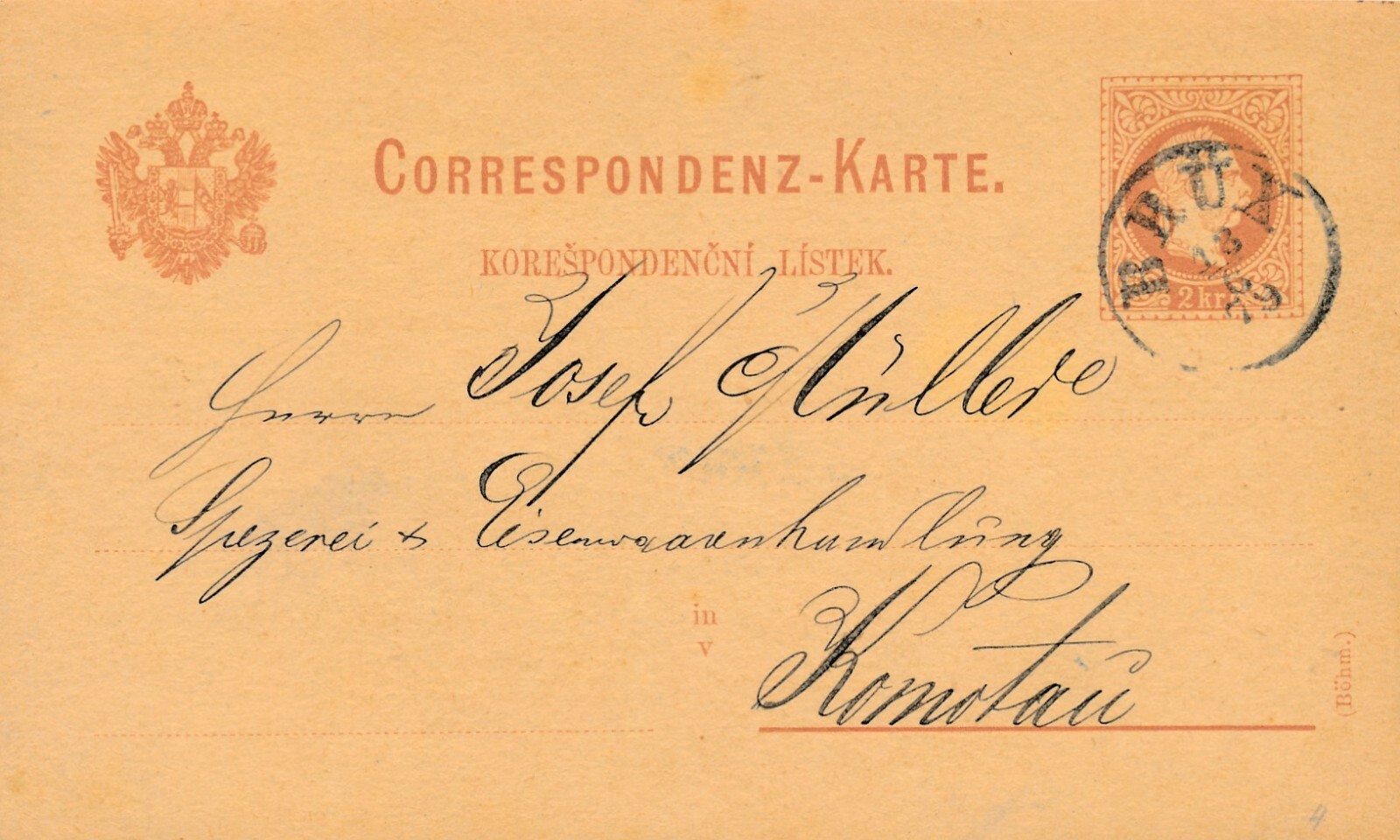 2 Kreuzer - Ganzsachen - Karte 1879 aus Brüx (10165)