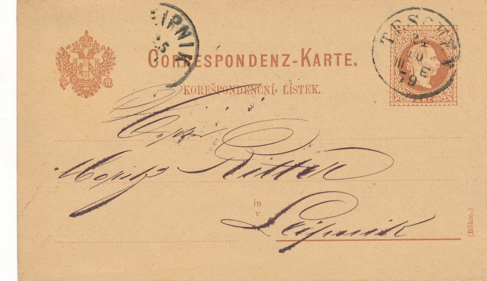 2 Kreuzer - Ganzsachen - Karte 1879 aus Teschen (11735)