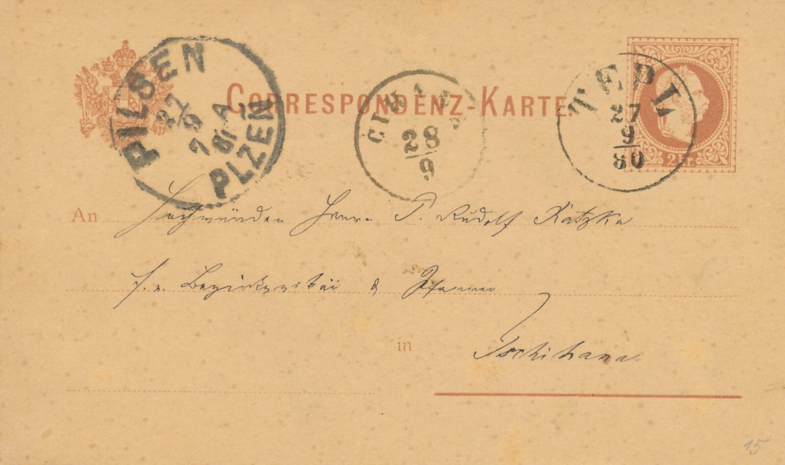 2 Kreuzer - Ganzsachen Karte 1880 aus Tepl (11143)