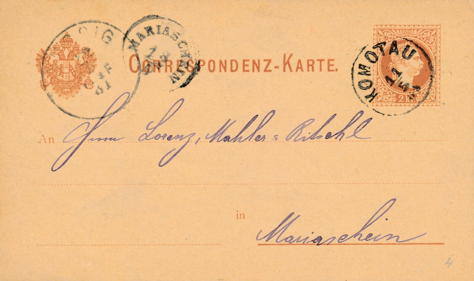 2 Kreuzer - Ganzsachen - Karte 1881 aus Komotau (10059)