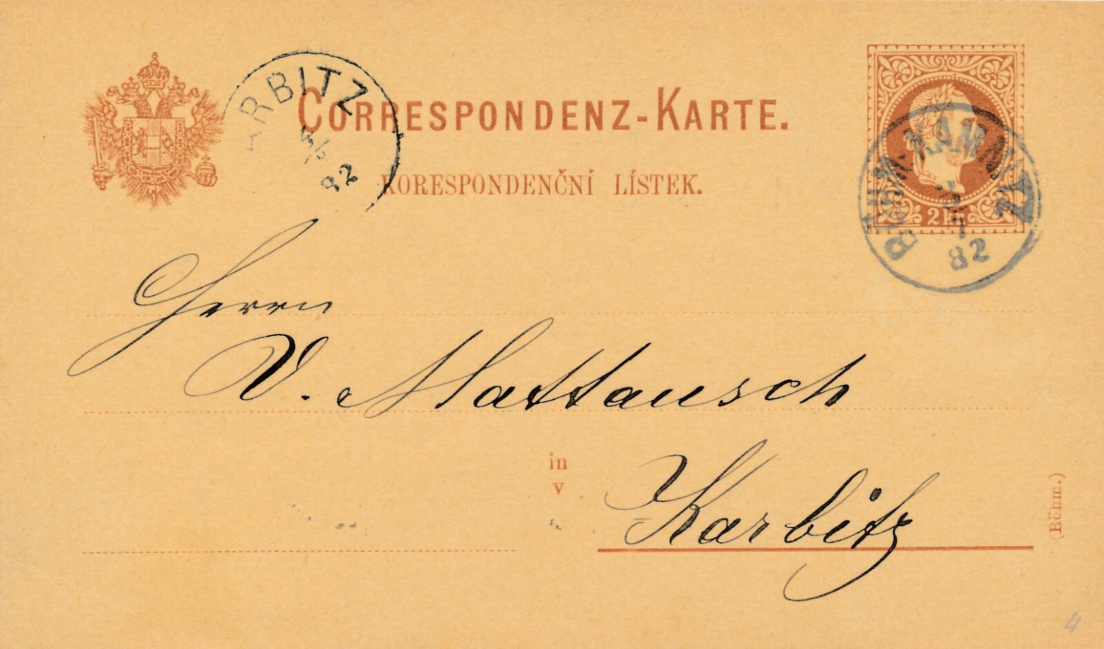 2 Kreuzer - Ganzsachen - Karte 1882 aus Böhm Kamnitz (13598)