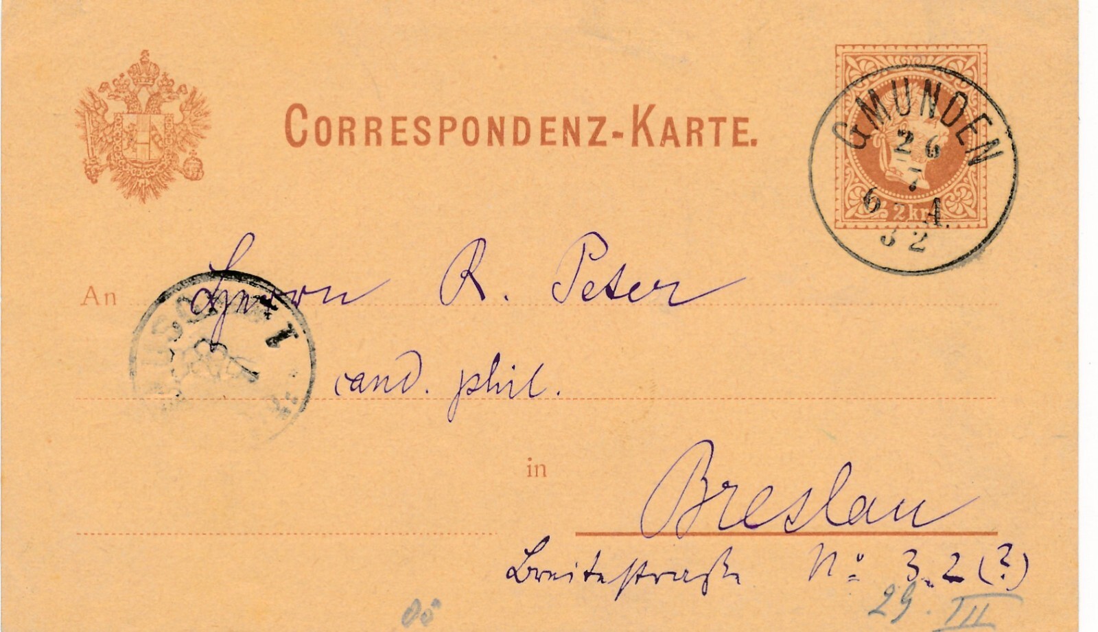 2 Kreuzer Ganzsachen - Karte 1882 aus Gmunden (12531)