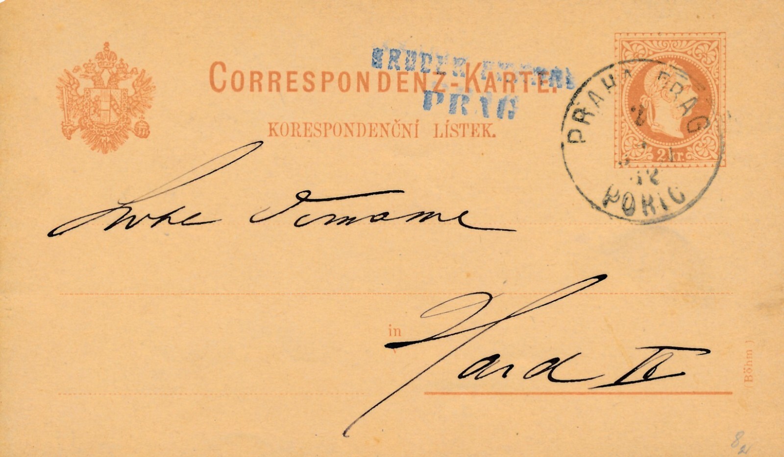 2 Kreuzer - Ganzsachen - Karte 1882 aus Praha - Prag (13543)