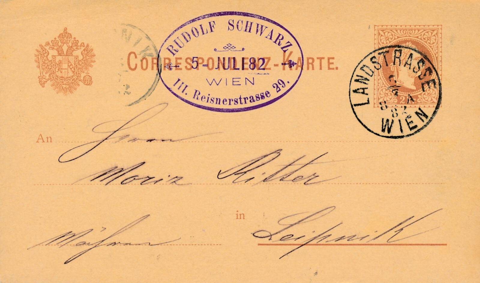 2 Kreuzer - Ganzsachen - Karte 1882 aus Wien Landstrasse (13560)