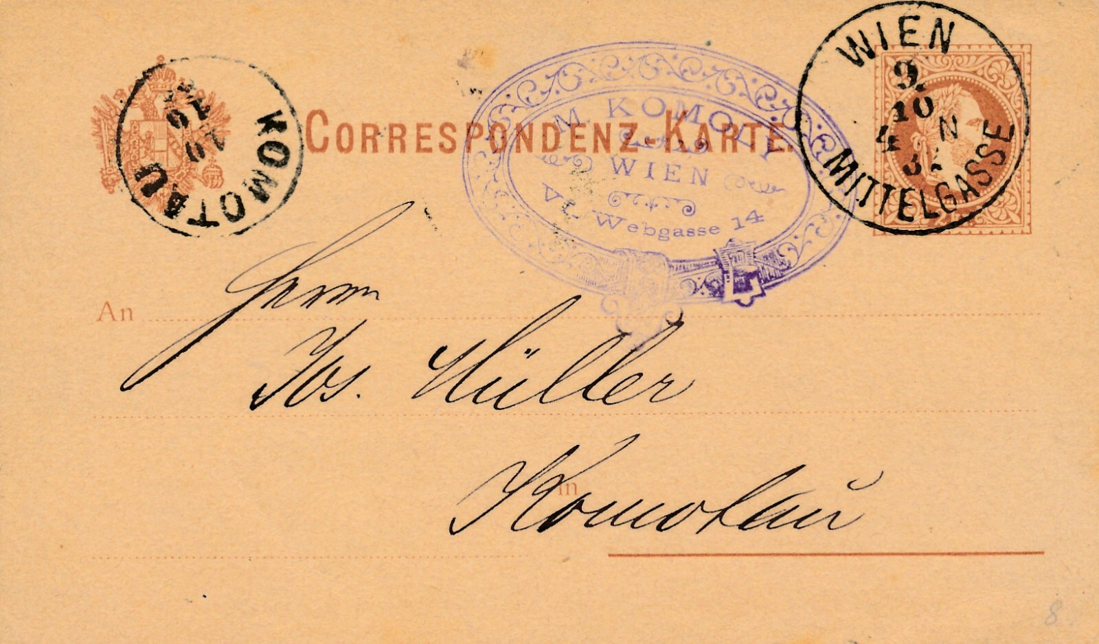2 Kreuzer Ganzsachen - Karte 1882 aus Wien Mittelgasse (11176)