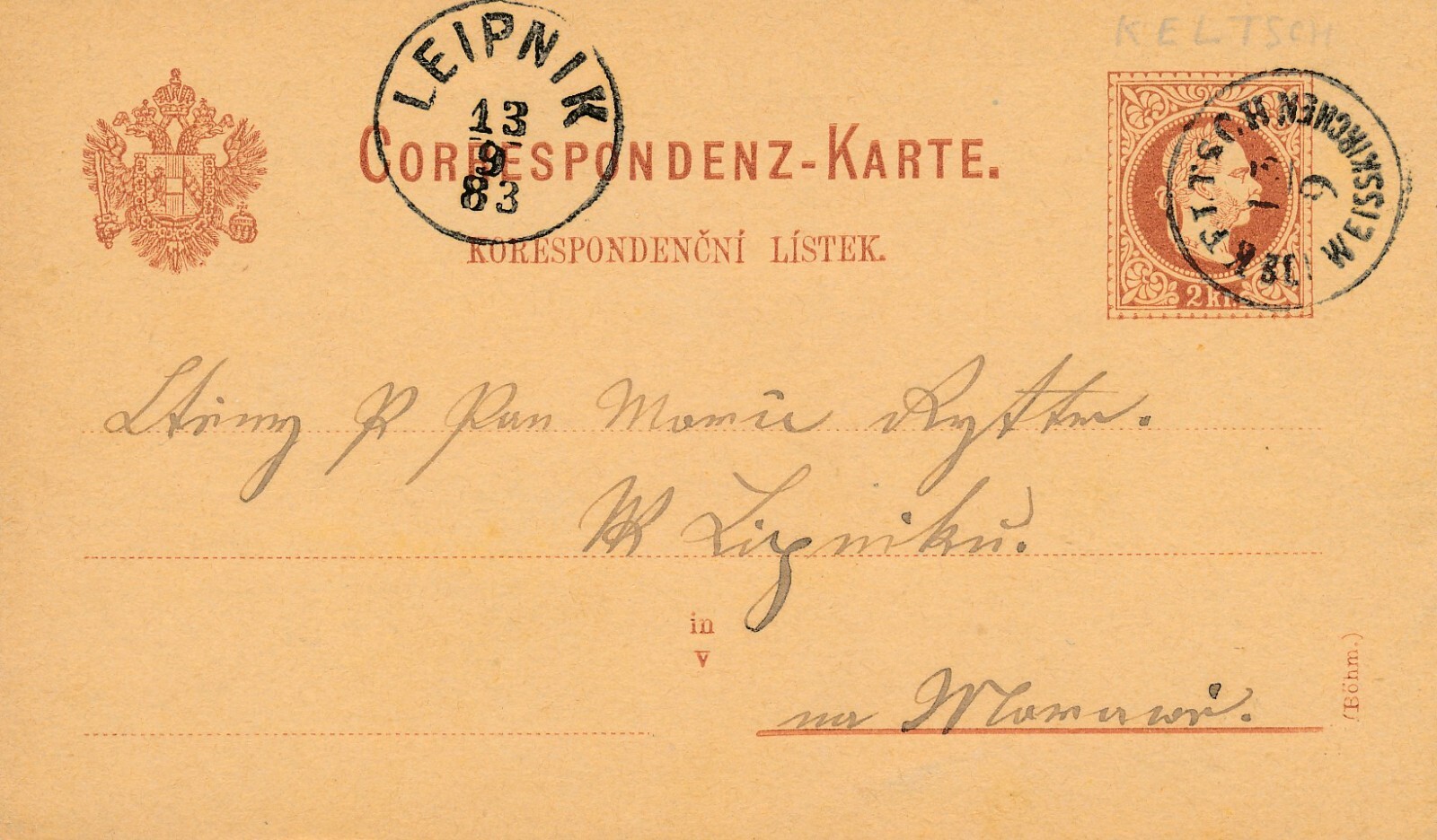 2 Kreuzer - Ganzsachen - Karte 1883 aus Weisskirchen (10863)