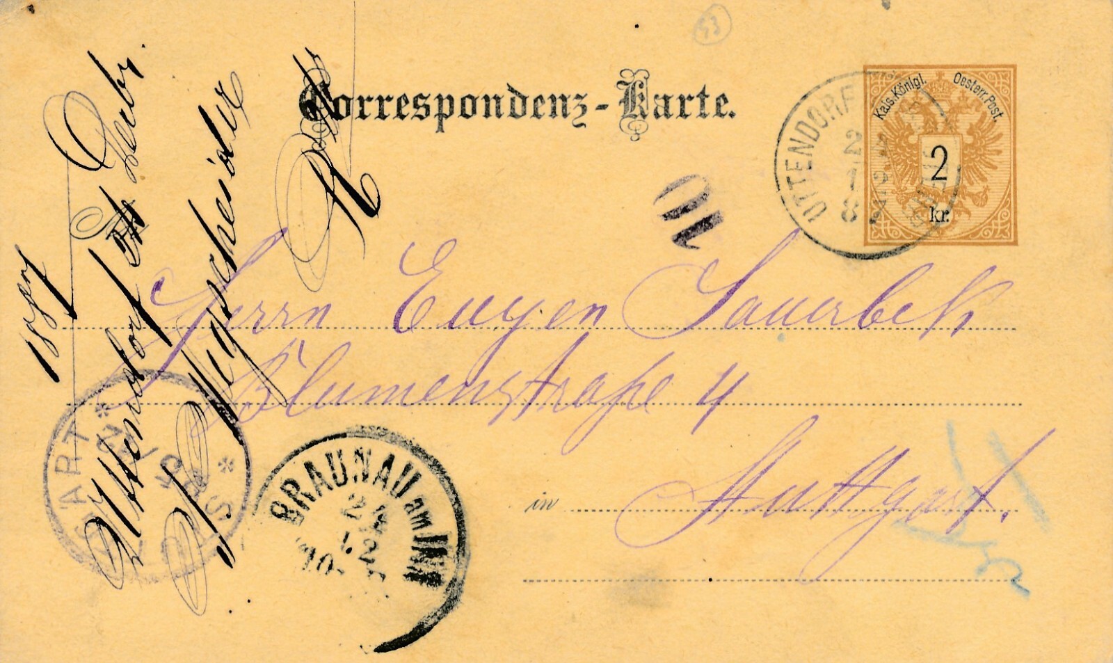 2 Kreuzer Ganzsachen - Karte 1887 aus Uttendorf (11604)