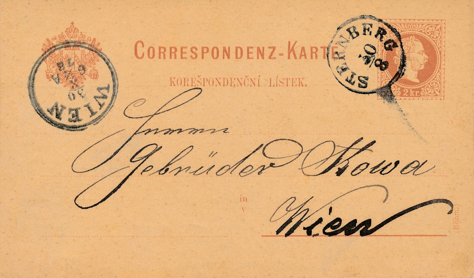 2 Kreuzer - Ganzsachen - Karte 1889 aus Sternberg (10153)