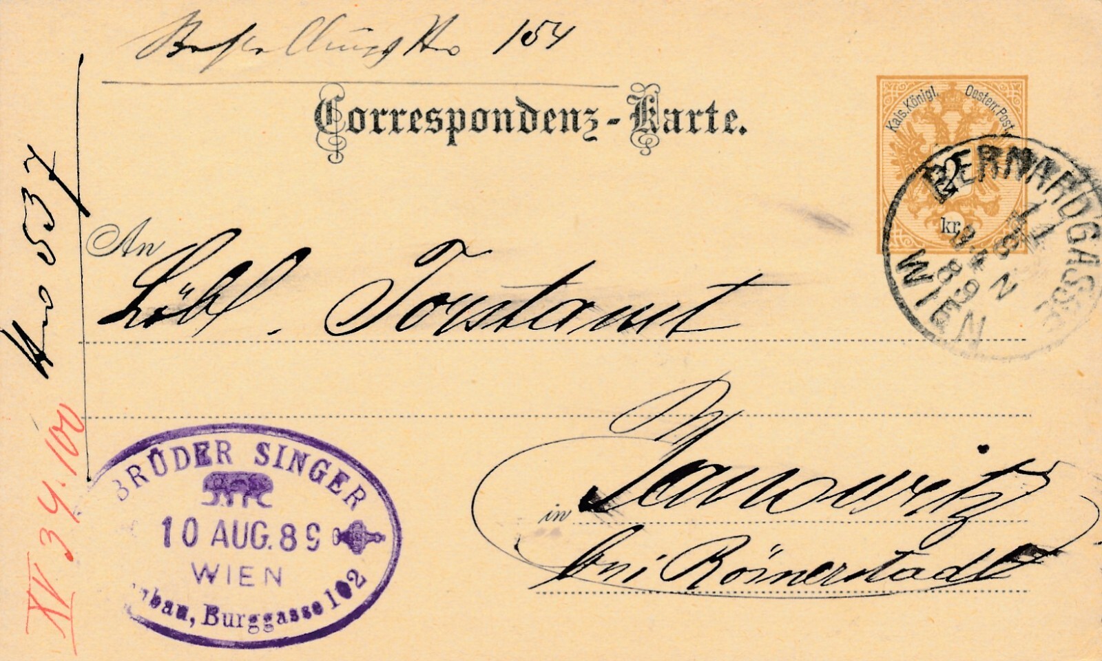 2 Kreuzer - Ganzsachen - Karte 1889 aus Wien (10678)