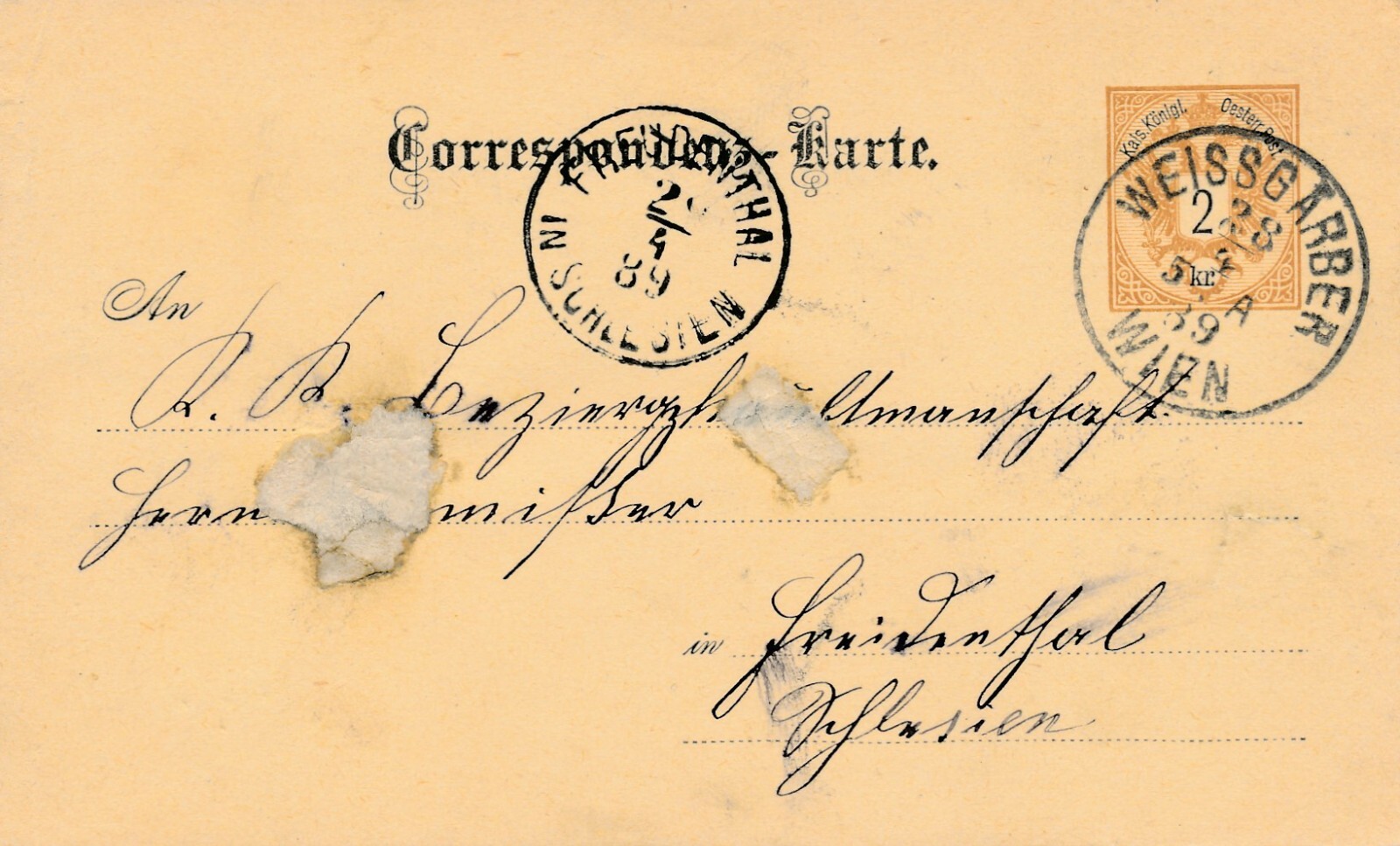 2 Kreuzer - Ganzsachen - Karte 1889 aus Wien Weissgräber (10680)