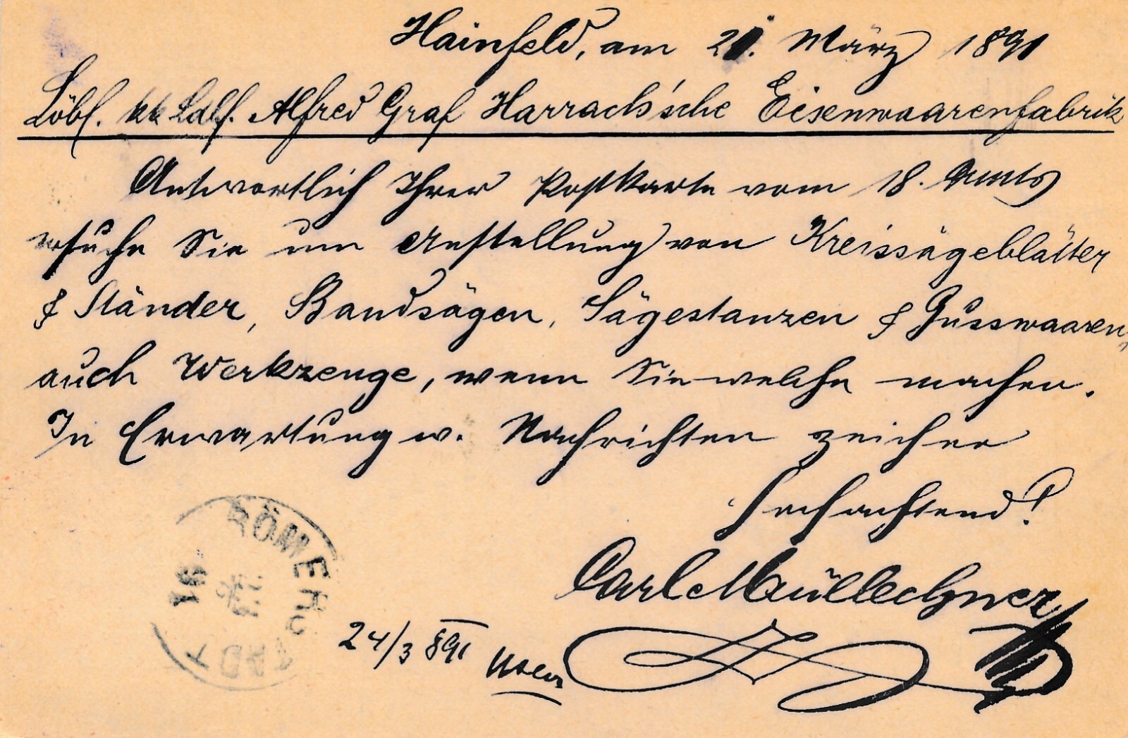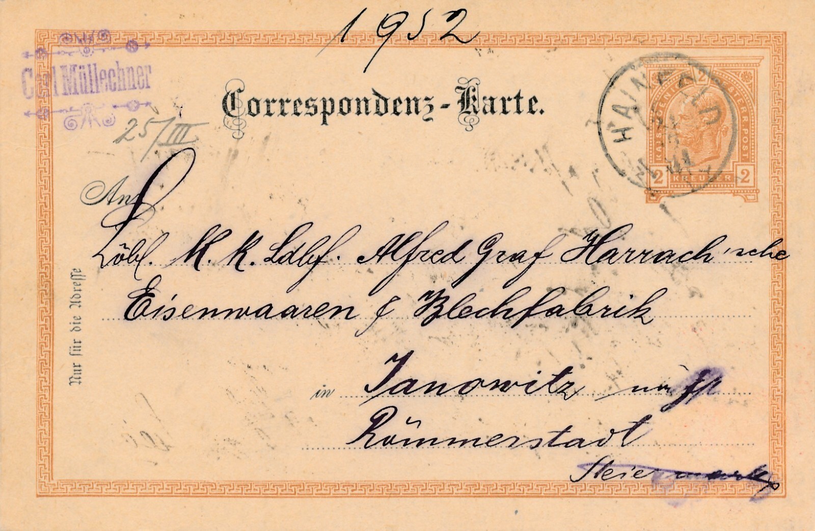 2 Kreuzer - Ganzsachen - Karte 1891 aus Hainfeld (10681)