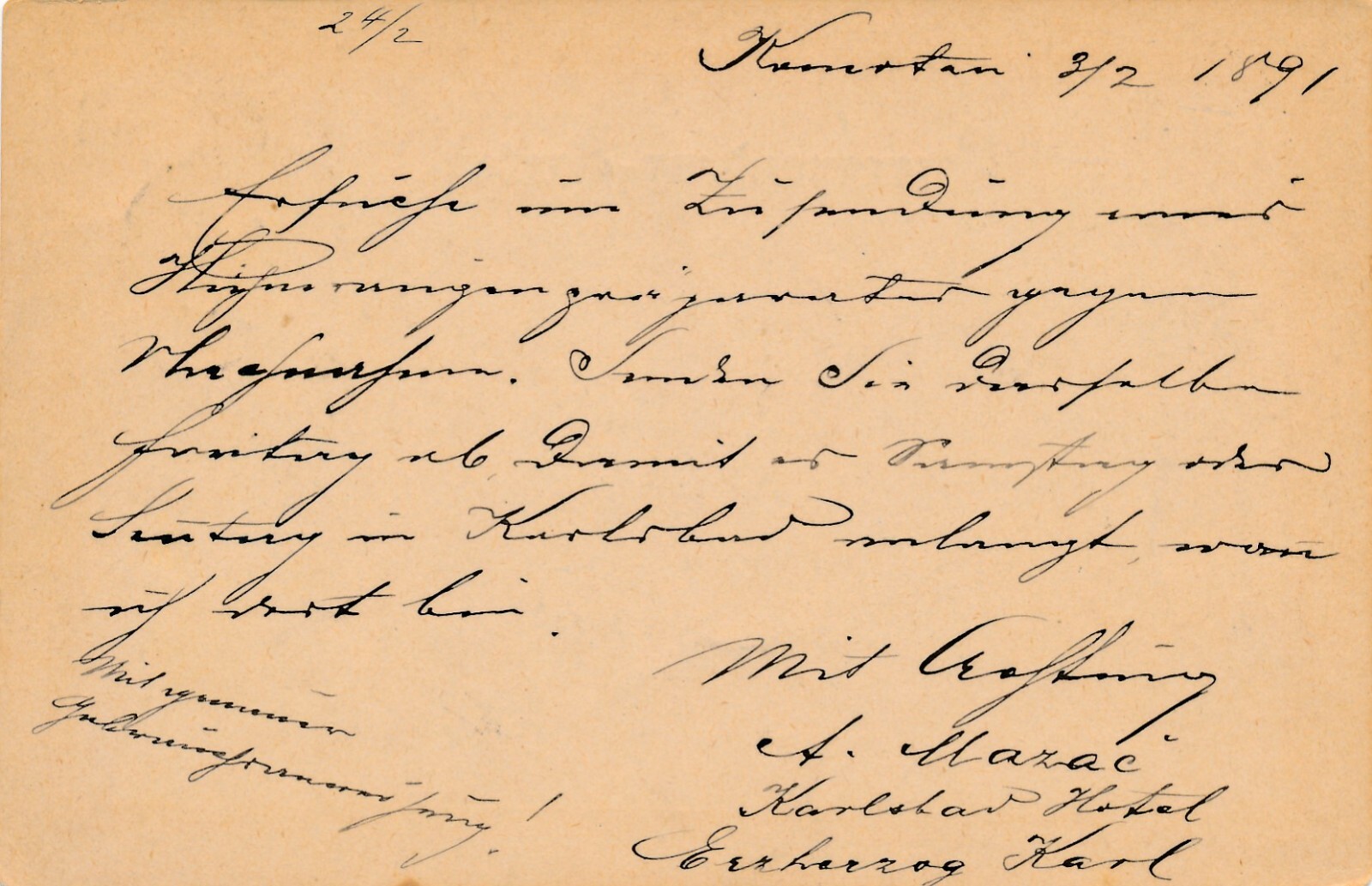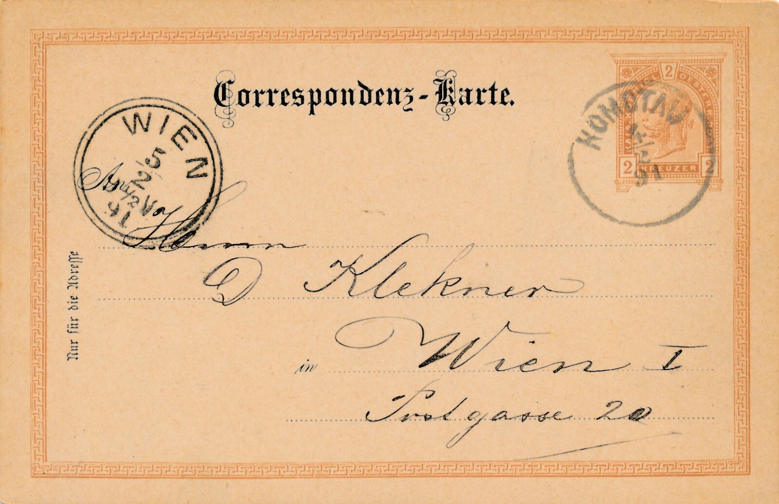2 Kreuzer Ganzsachen - Karte 1891 aus Komotau (11165)