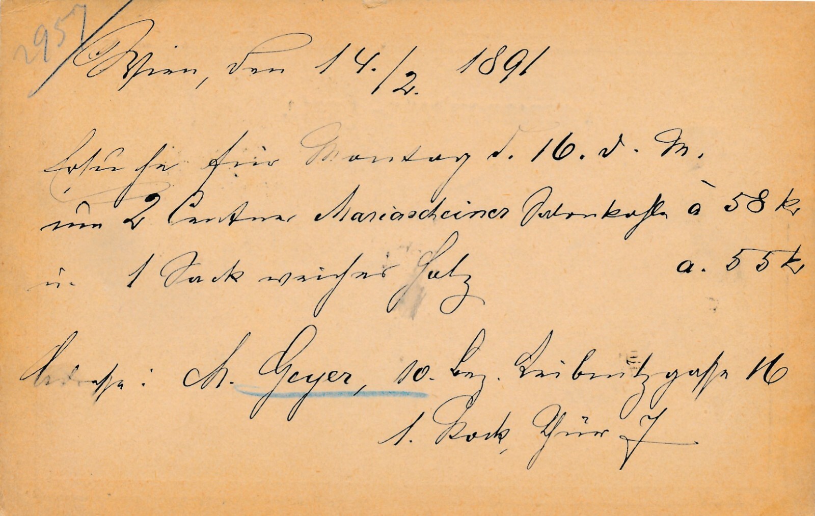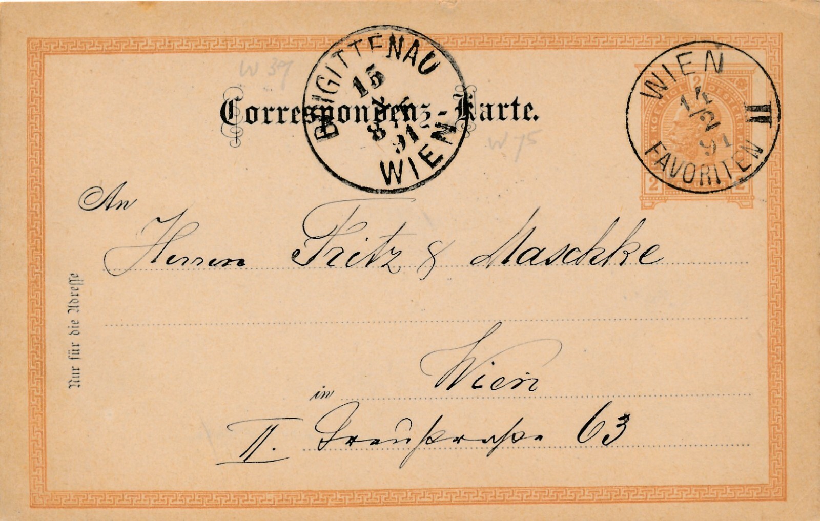 2 Kreuzer Ganzsachen - Karte 1891 aus Wien Favoriten (11172)
