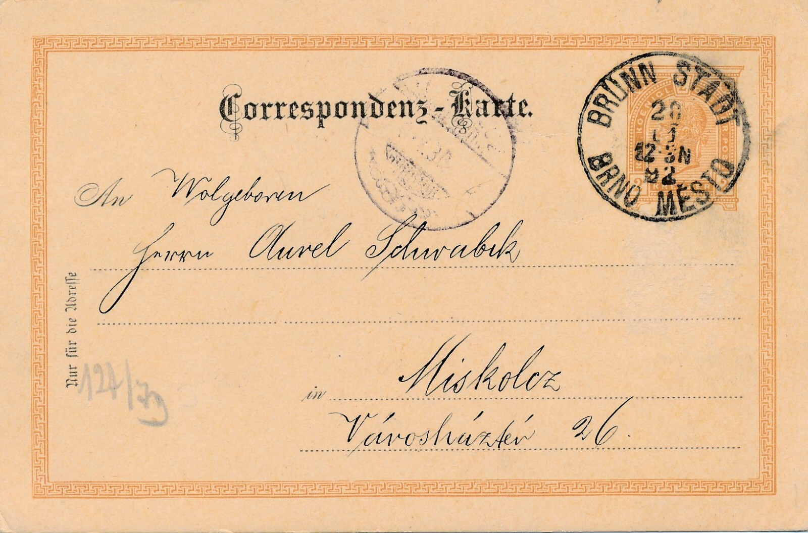 2 Kreuzer Ganzsachen - Karte 1892 aus Brünn Stadt (12533)