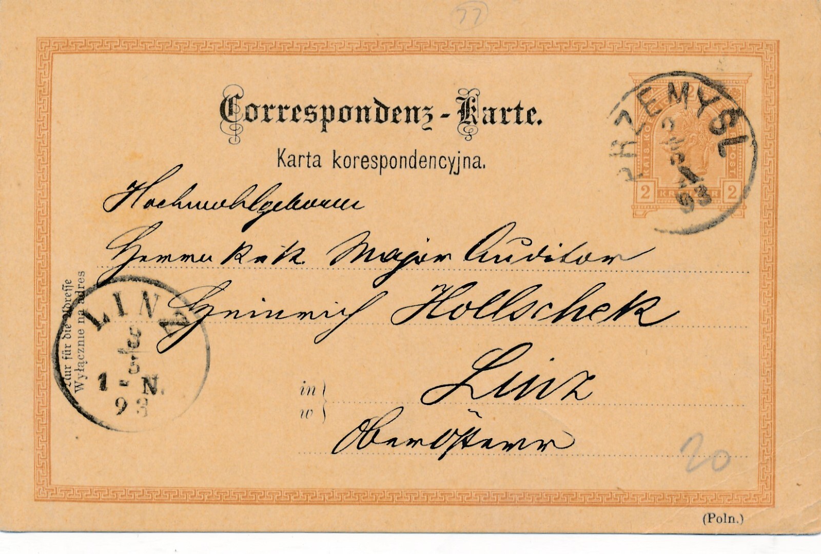 2 Kreuzer - Ganzsachen - Karte 1893 aus Przrmysl (12287)