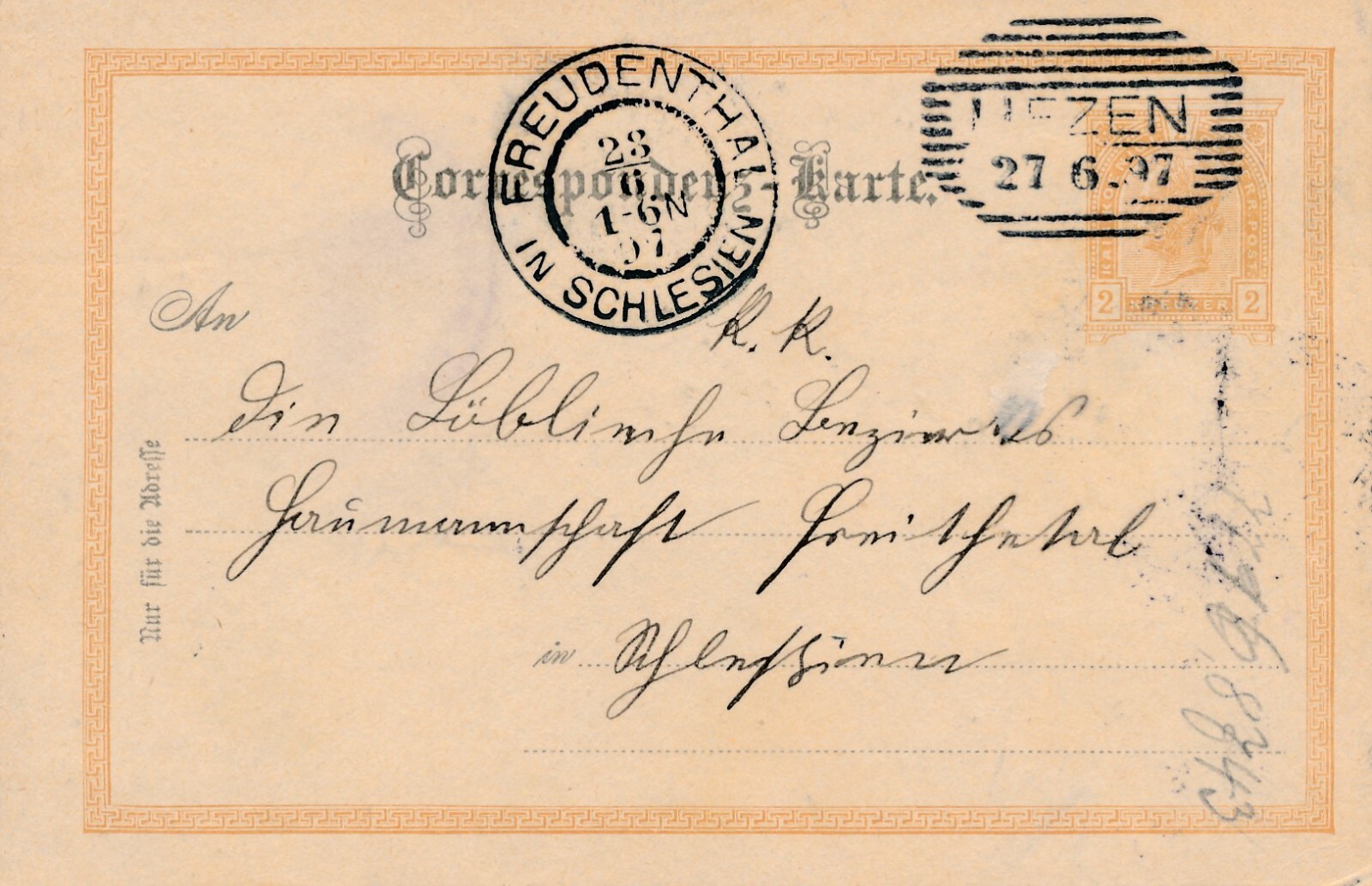 2 Kreuzer Ganzsachen - Karte 1897 aus Lienz (8397)