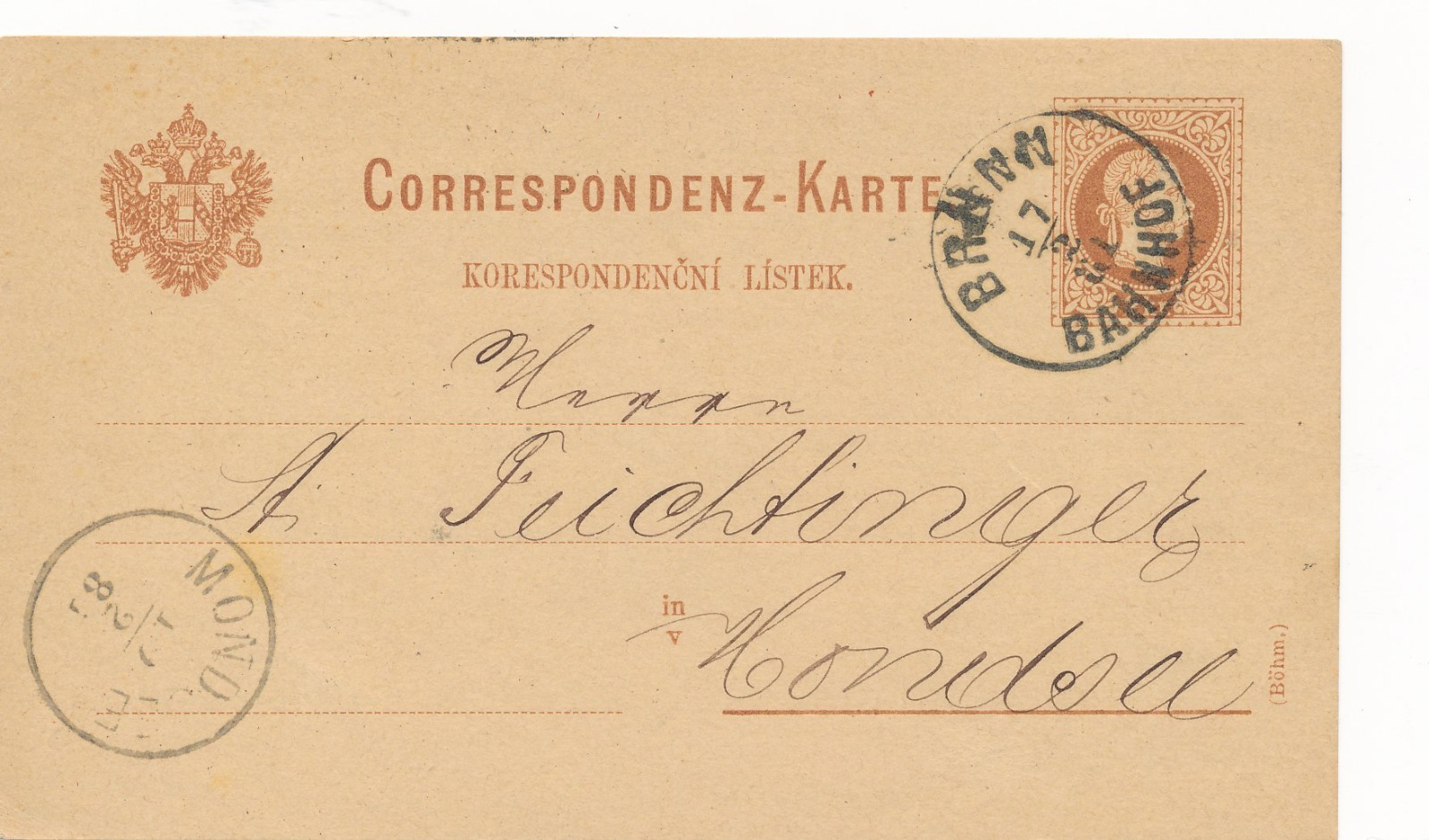 2 Kreuzer - Ganzsachen - Karte aus Brünn Bahnhof (16220)
