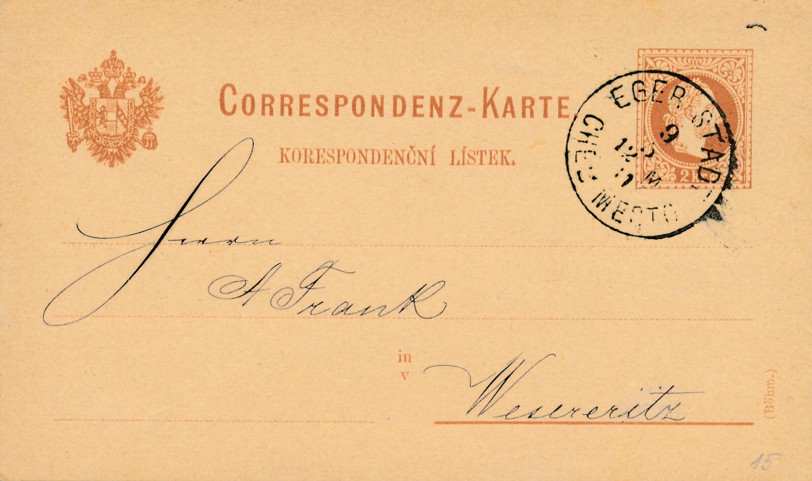 2 Kreuzer - Ganzsachen - Karte aus Eger Stadt (10868)