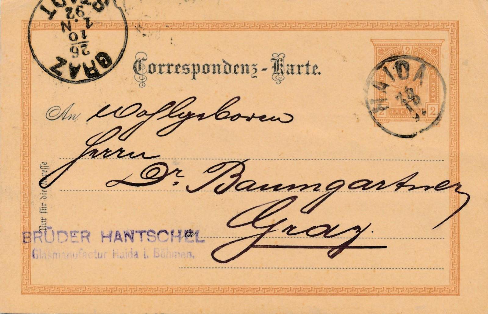 2 Kreuzer - Ganzsachen - Karte aus Haida (16218)