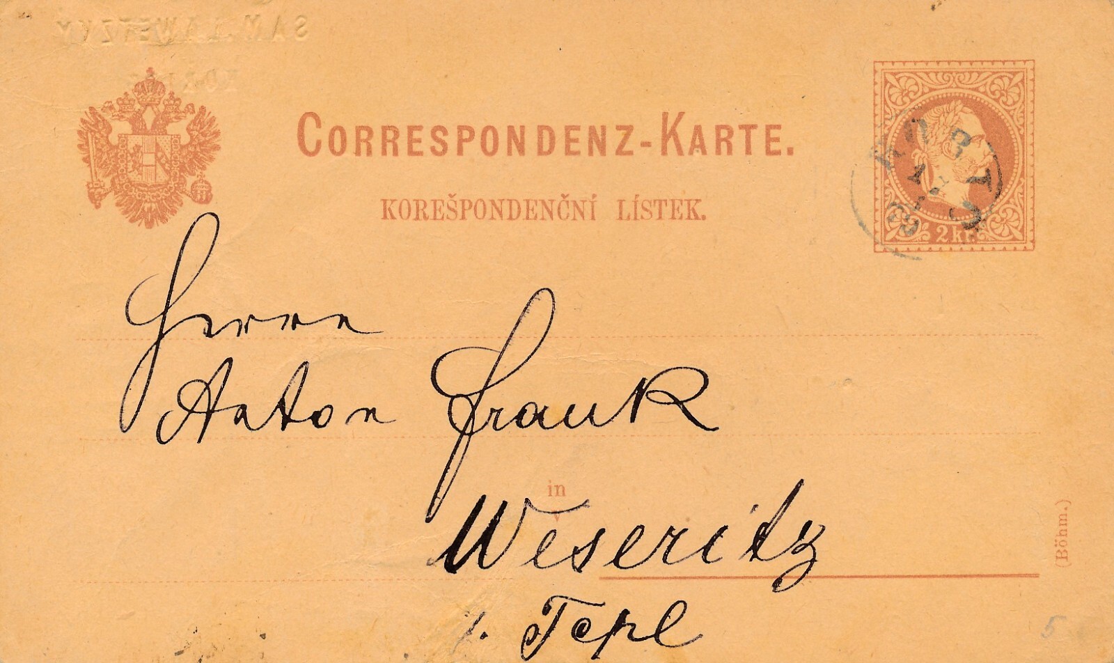 2 Kreuzer - Ganzsachen - Karte aus Horic (13590)