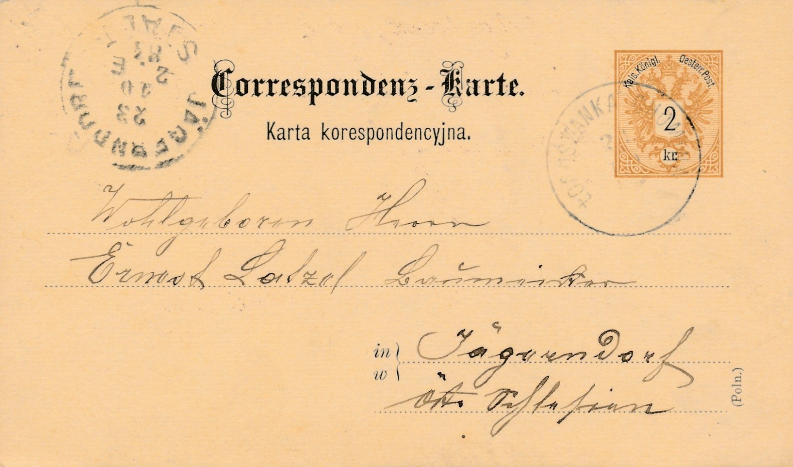2 Kreuzer Ganzsachen - Karte aus Lobaszanka (16279)