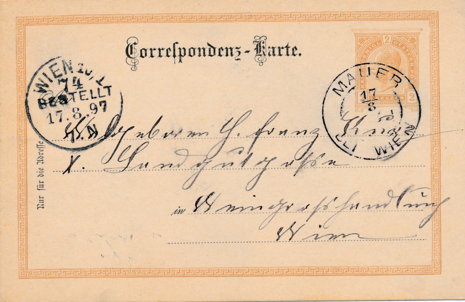 2 Kreuzer Ganzsachen - Karte aus Mauer Wien (16353)