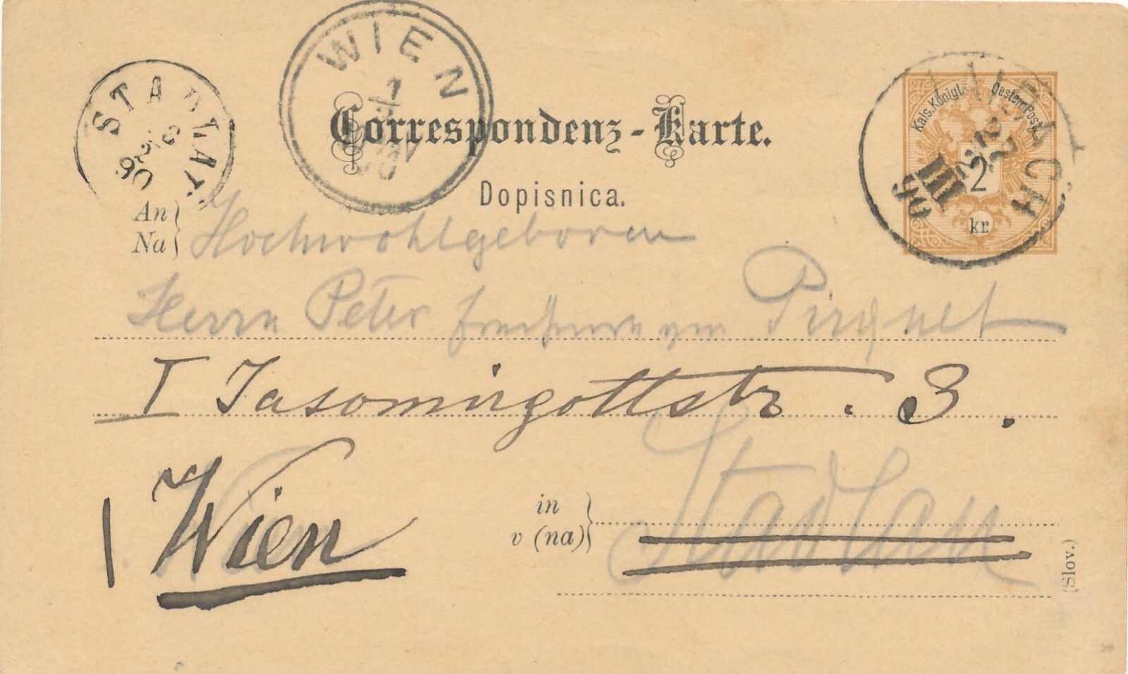 2 Kreuzer Ganzsachen - Karte (Slov) 1890 aus Laibach (10545)