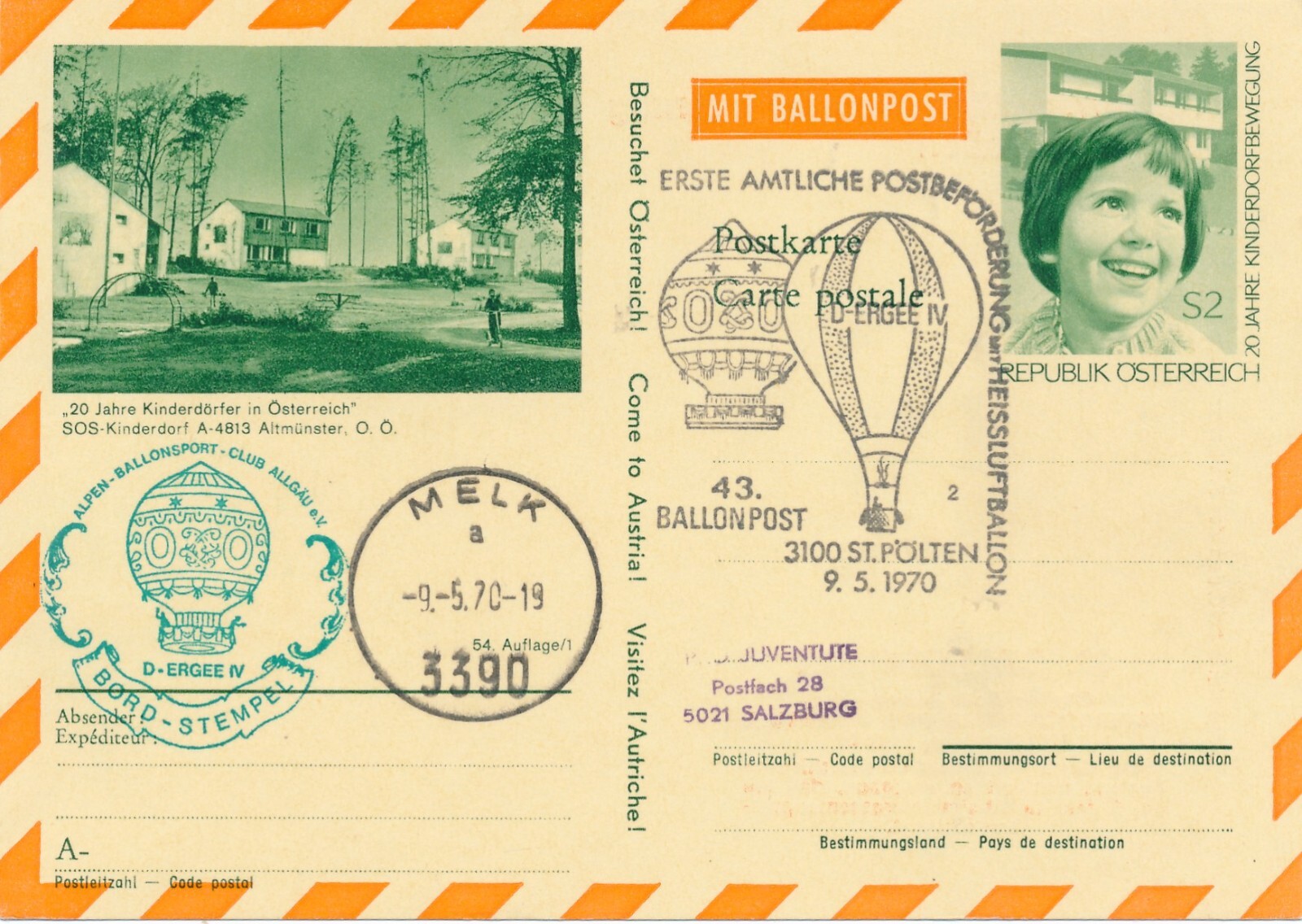 43. Ballonpost St. Pölten auf Bildpostkarte 1970 Altmünster Oberösterr. (11502)