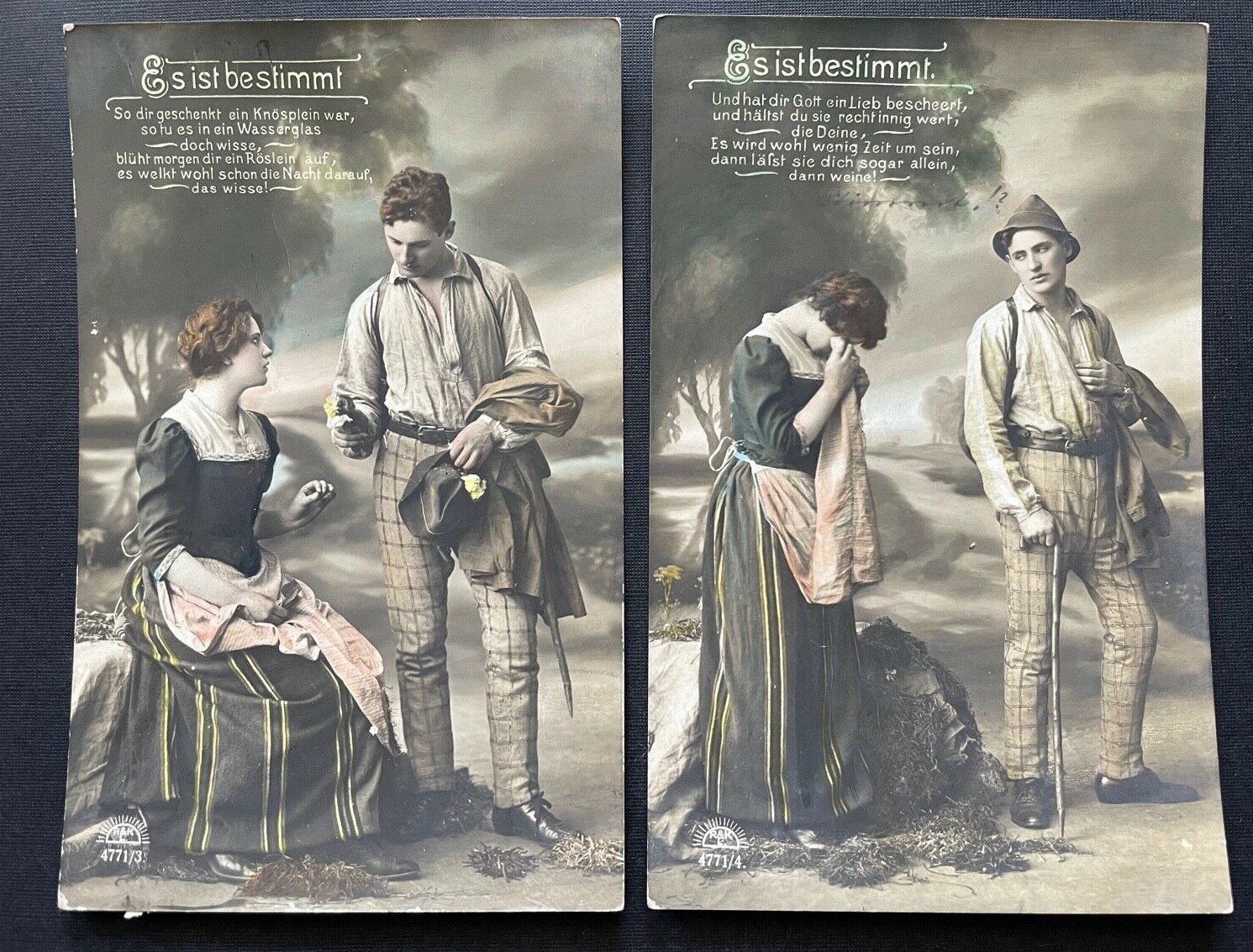 4er Set Es ist bestimmt Gedicht Mann Frau Paar Liebe Kleid Hut Tracht 400408 TH