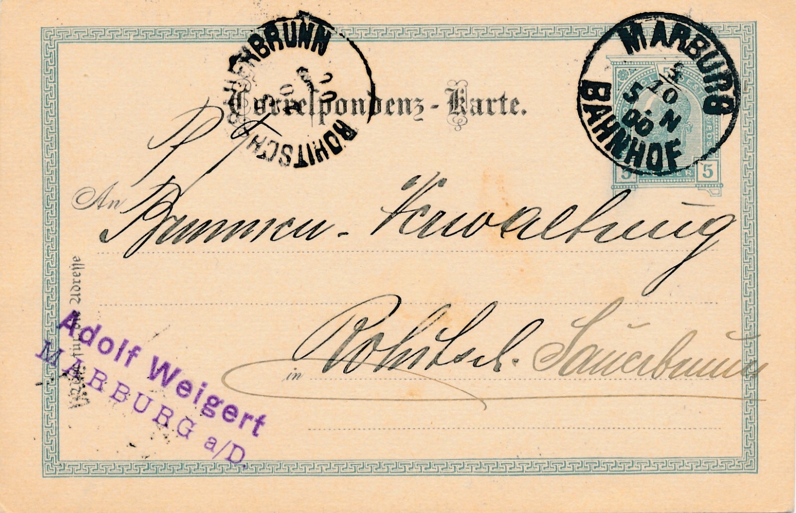 5 Heller Ganzsachen - Karte 1900 aus Maarburg Bahnhof (11613)