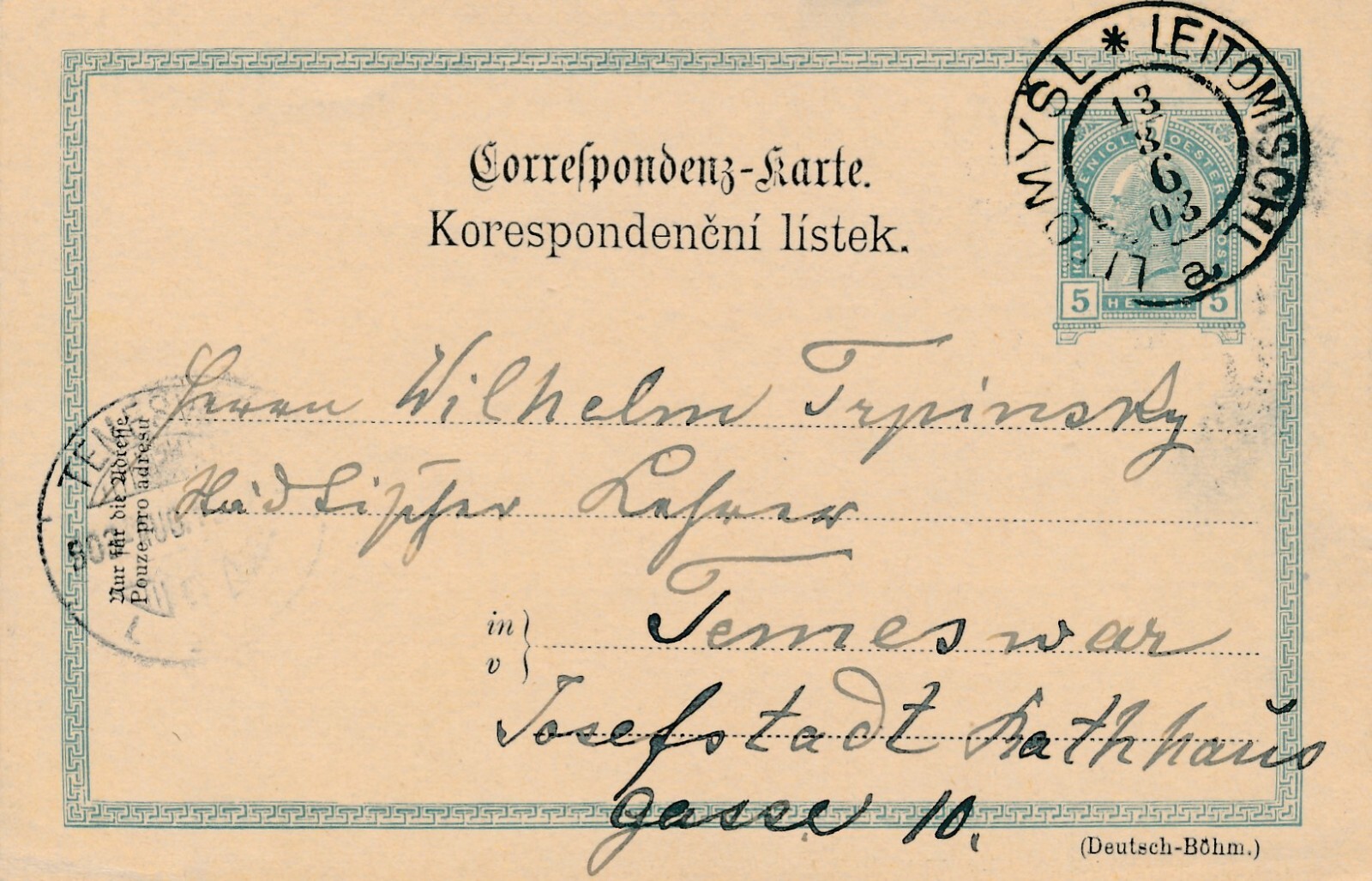 5 Heller Ganzsachen - Karte 1903 aus Leitomischl (11612)