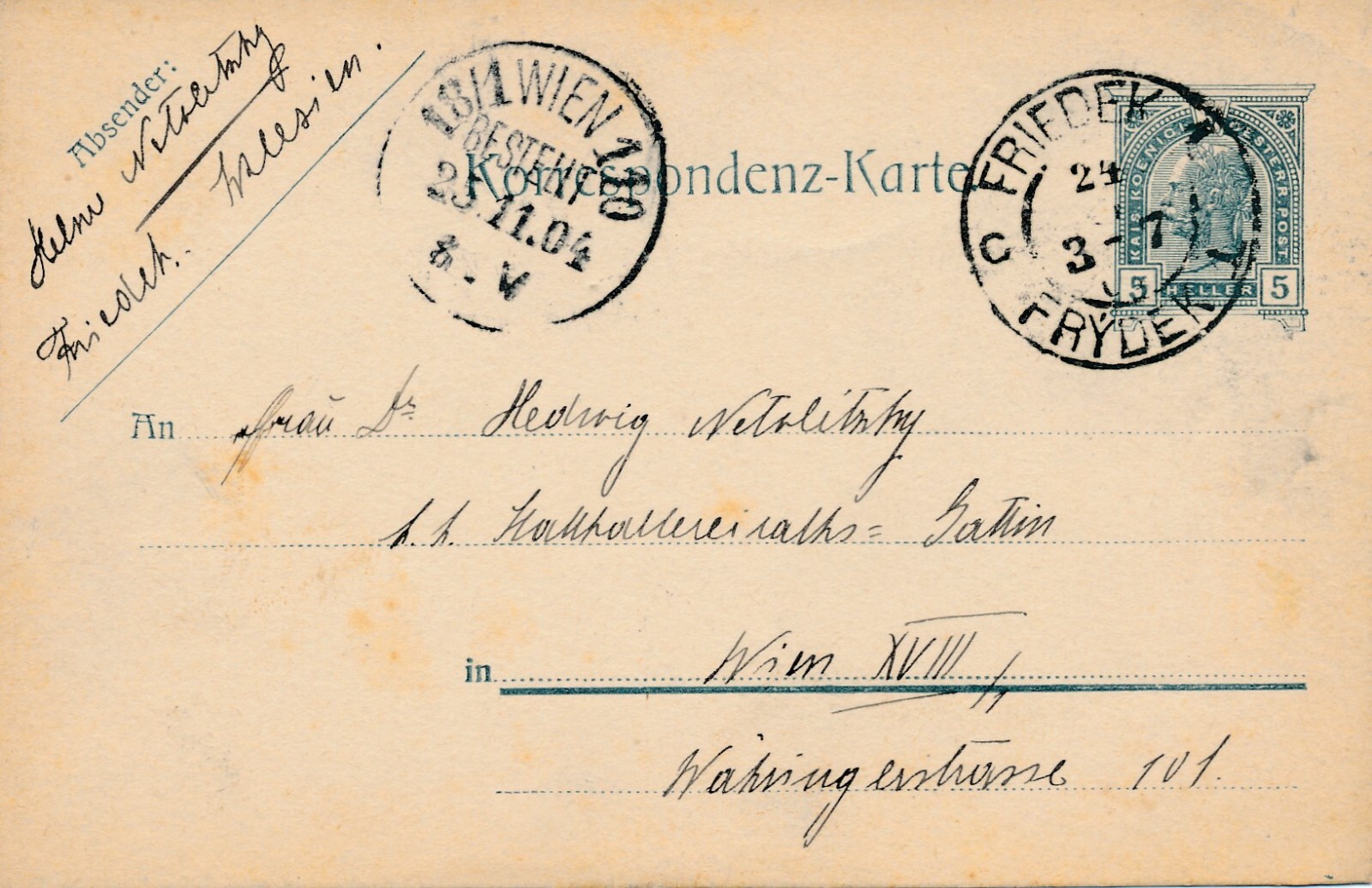 5 Heller - Ganzsachen - Karte 1904 aus Friedek (10655)