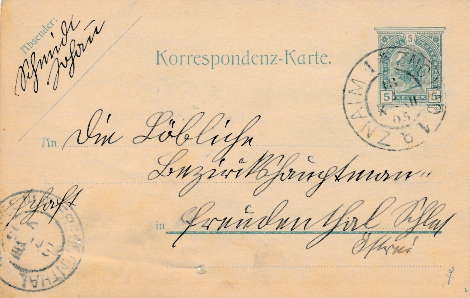 5 Heller - Ganzsachen - Karte 1905 aus Znaim (10646)