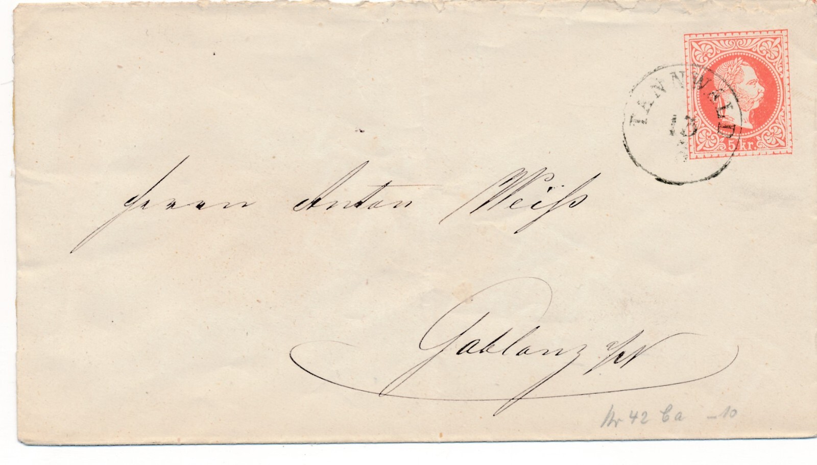 5 Kreuzer - Ganzsachen - Brief aus Tannenwald (11325)