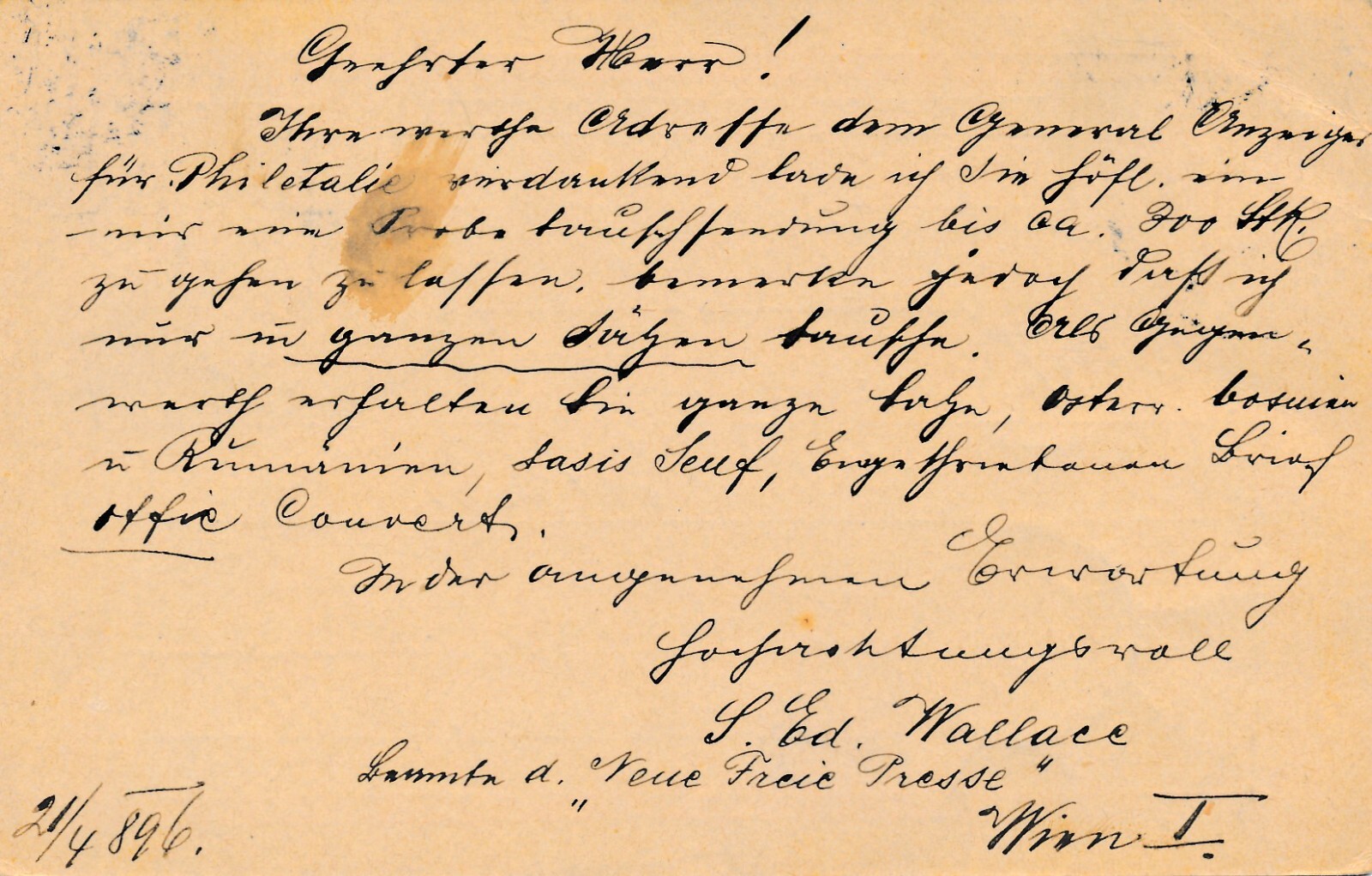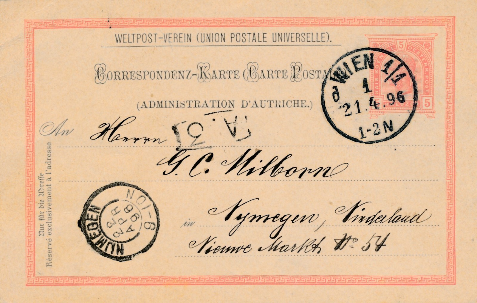 5 Kreuzer - Ganzsachen - Karte 1896 aus Wien (12317)