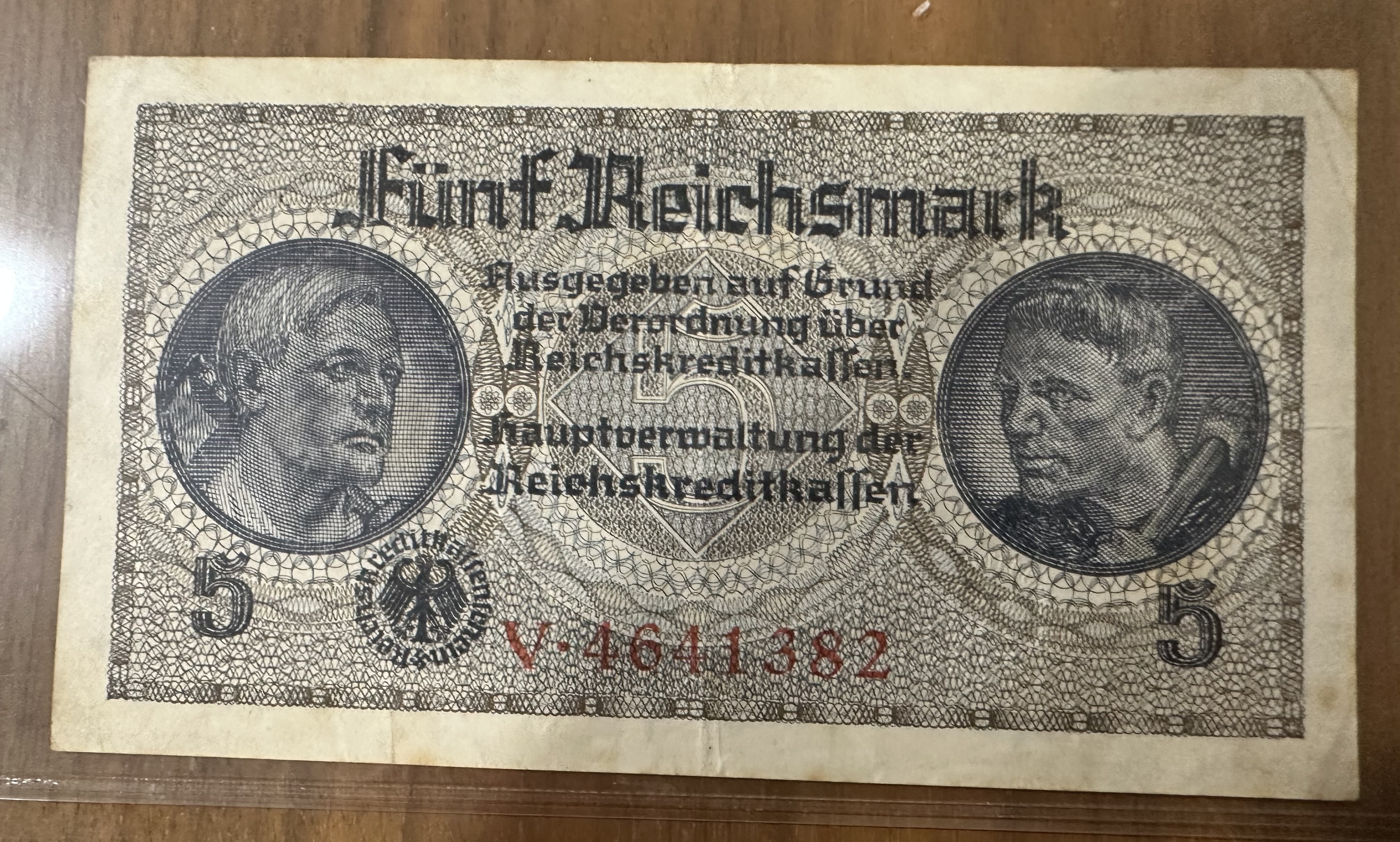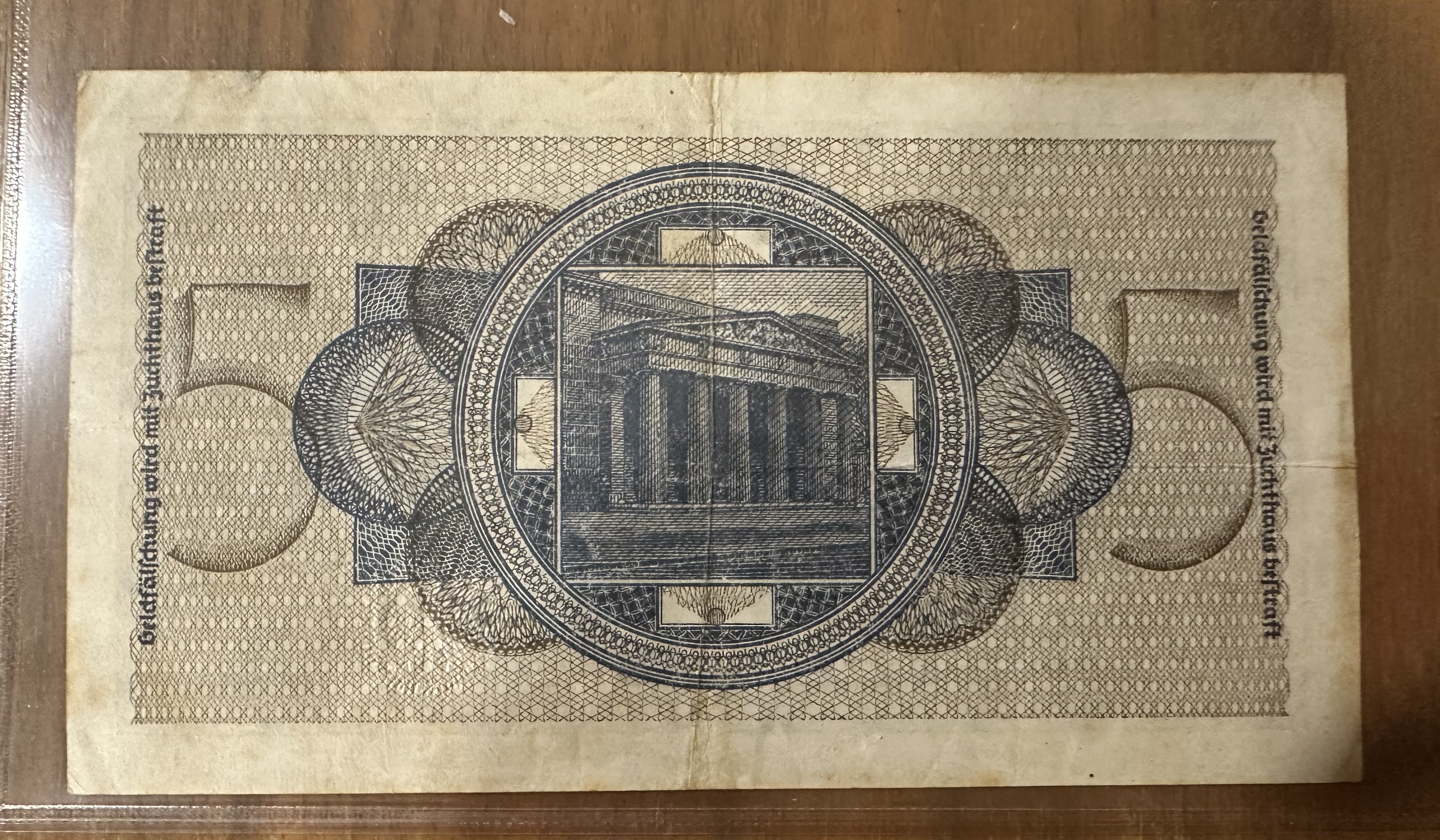 5 Reichsbanknote - wird in einer Folie versendet!