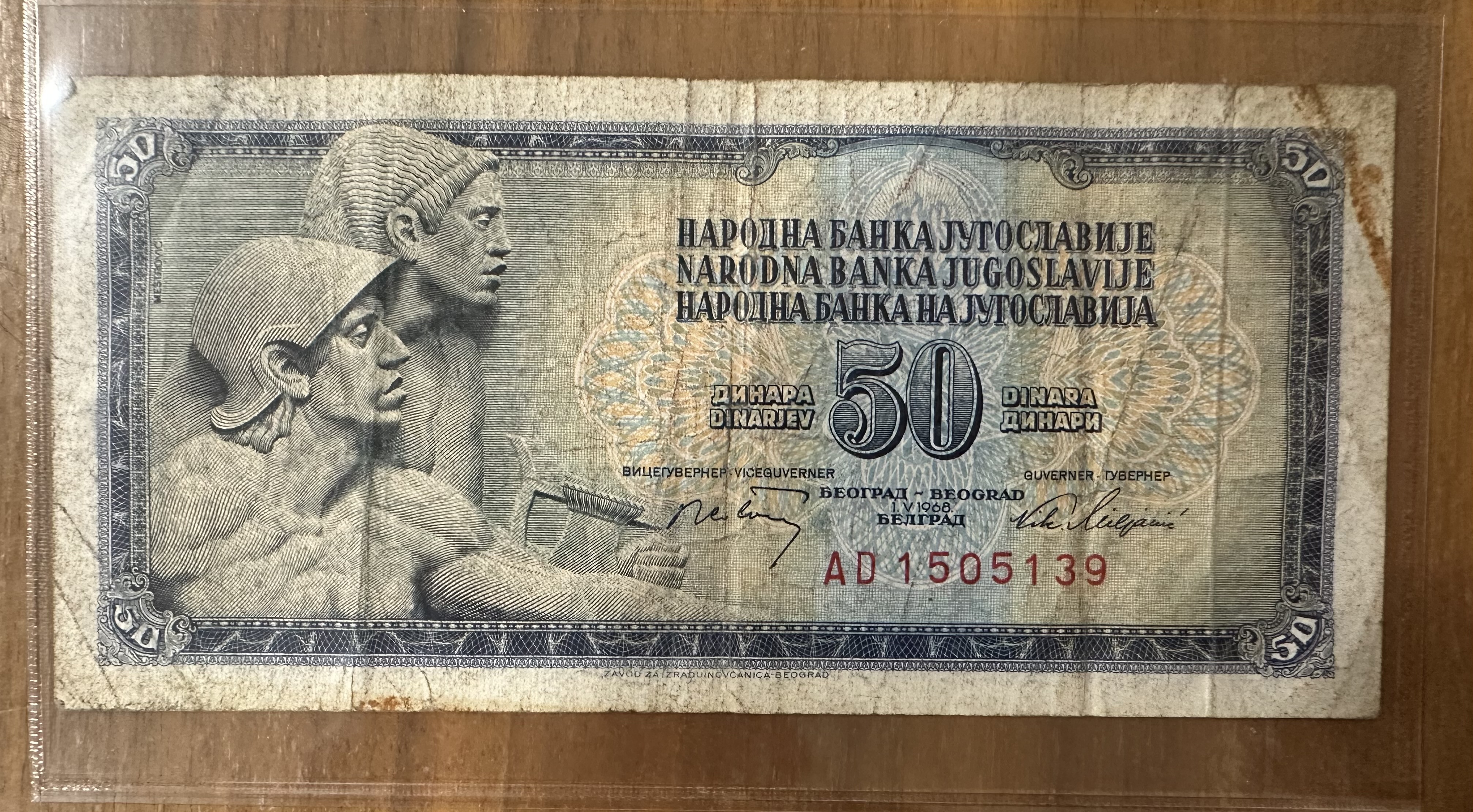 50 Dinar Banknote aus Jugoslawien - 1968 ausgegeben