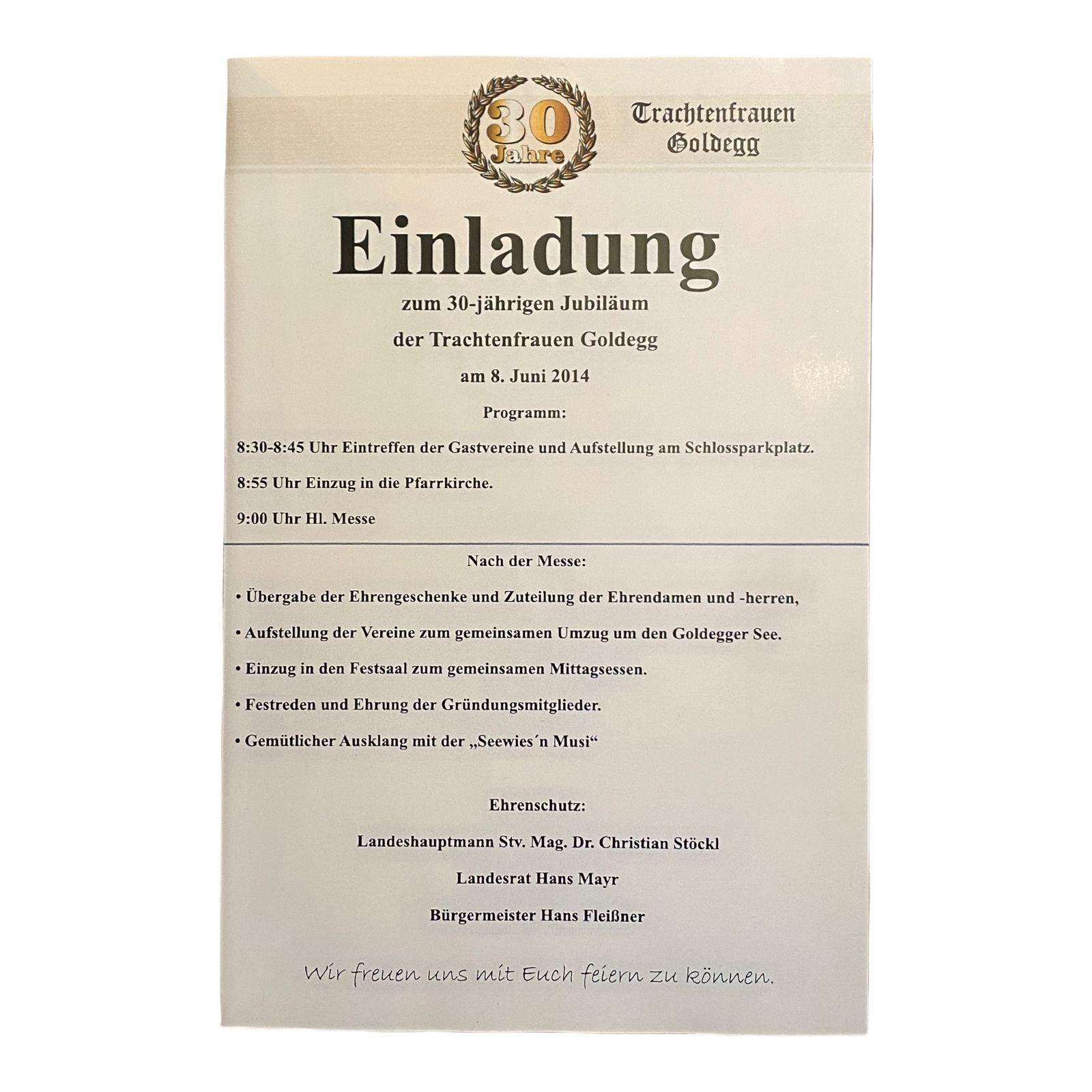 574 Trachtenfrauen EINLADUNG ZUM 30-JÄHRIGEN JUBILÄUM DER TRACHTENFRAUEN GOLDEGG