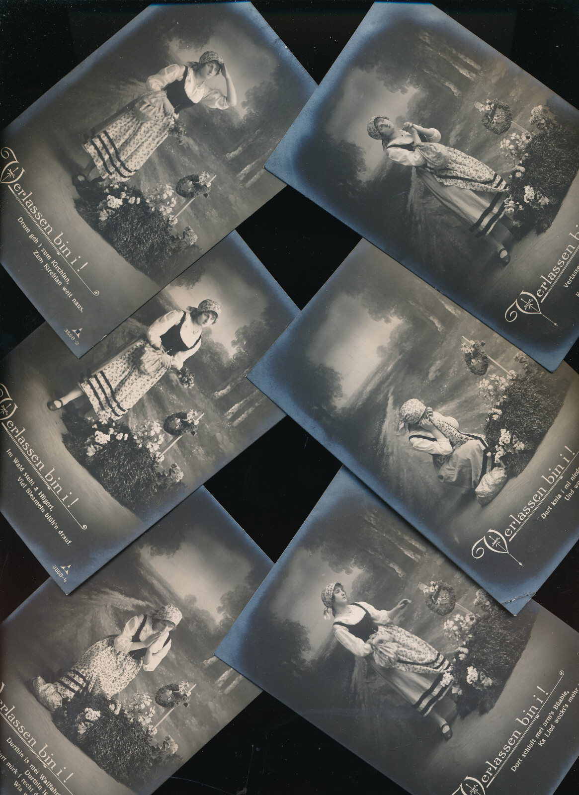 6 Romantik-Karten mit Spruch verlassen bin i (935)