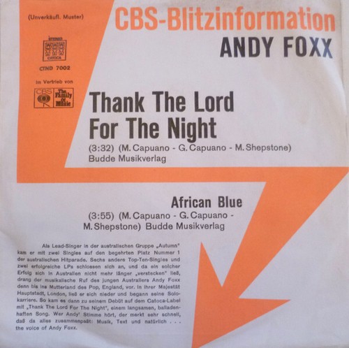 7", Single, Promo Andy Foxx - Thank The Lord For The Night