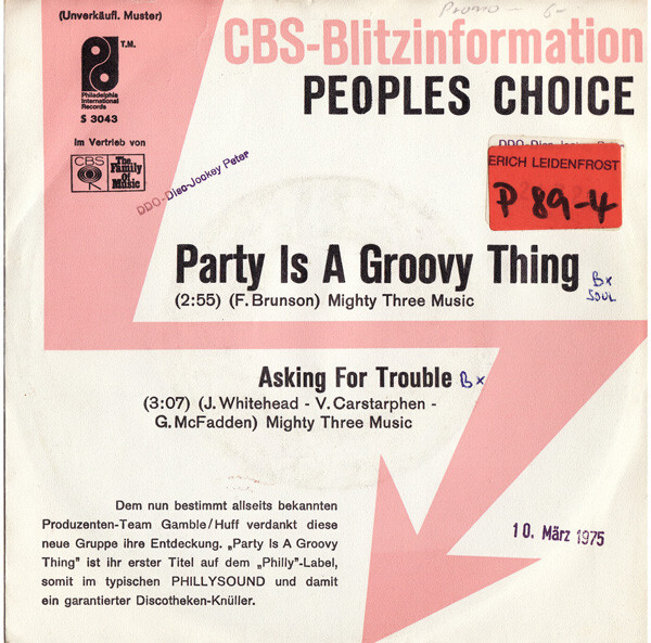 7", Single, Promo Peoples Choice* - Party Is A Groovy Thing