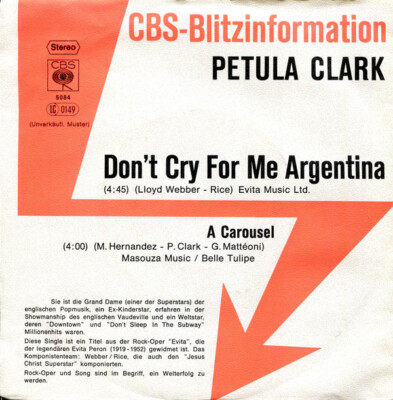 7", Single, Promo Petula Clark - Don't Cry For Me Argentina
