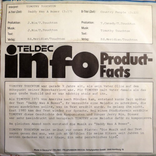 7", Single, Promo Timothy Touchton - Daddy Was A Boxer / Country People